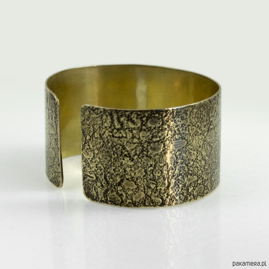 Bransoletka została wykonana w całości z mosiądzu, ma ok 3 cm szerokości i ok 17 cm długości. Rozmiar uniwersalny - pasuje praktycznie na każdy nadgarstek.
