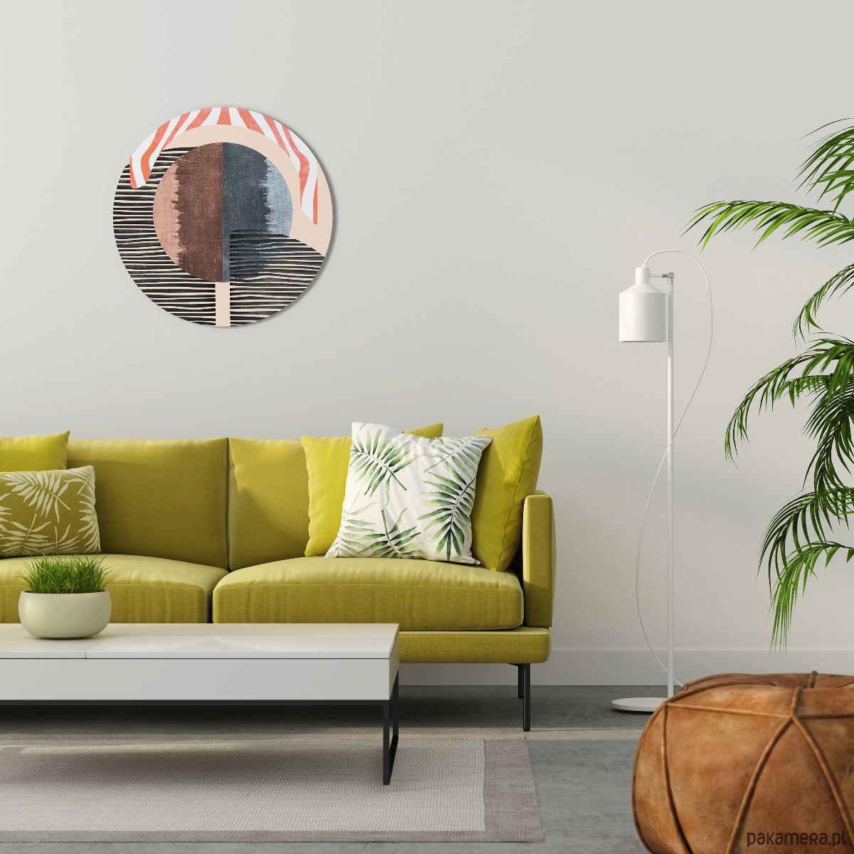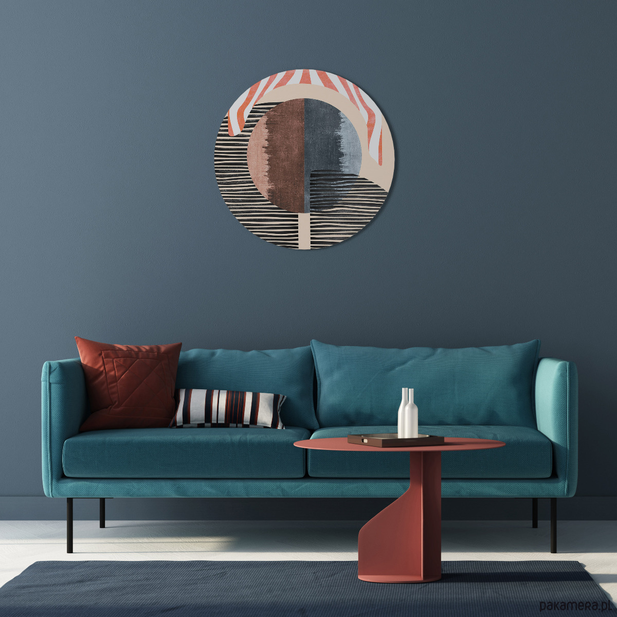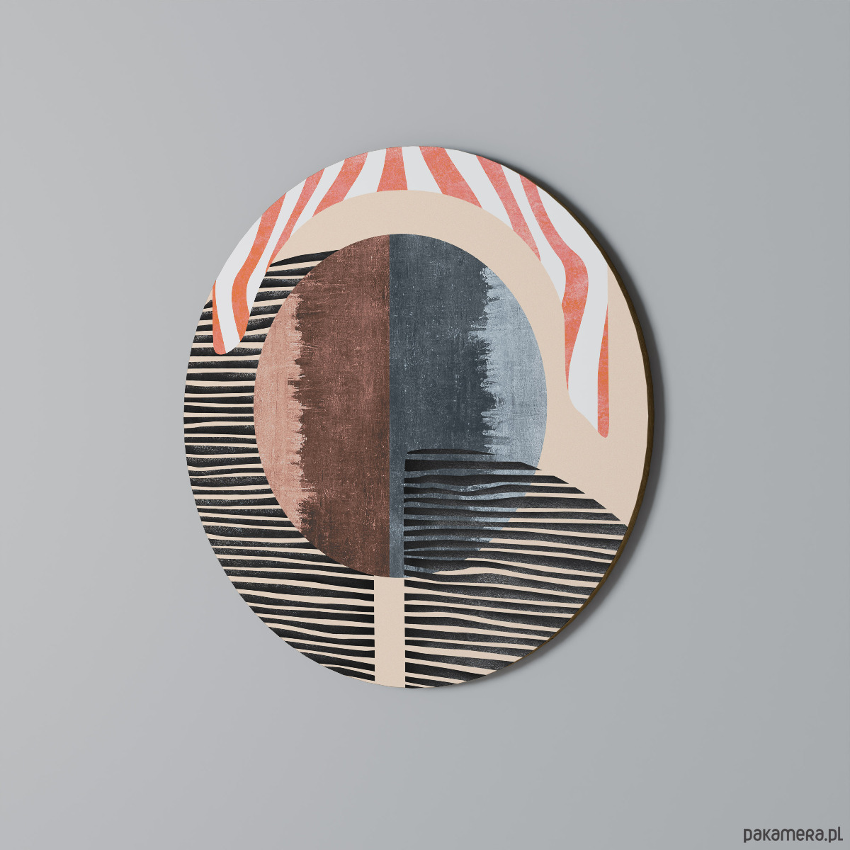 Wprowadź do swojego wnętrza wyjątkowy charakter dzięki eleganckiemu okrągłemu obrazowi. To nowoczesna dekoracja ścienna, która idealnie komponuje się z różnymi stylami aranżacji – od minimalistycznych, przez klasyczne, aż po boho.