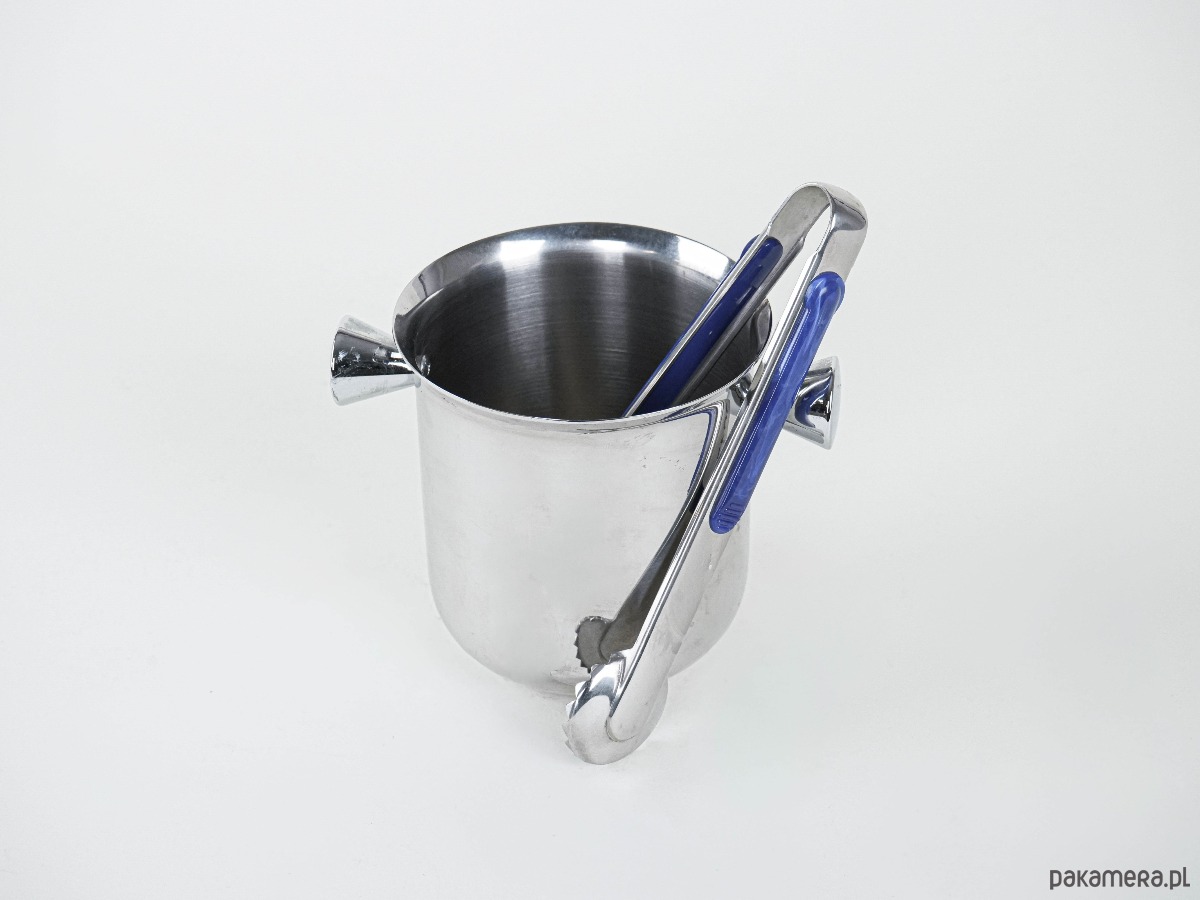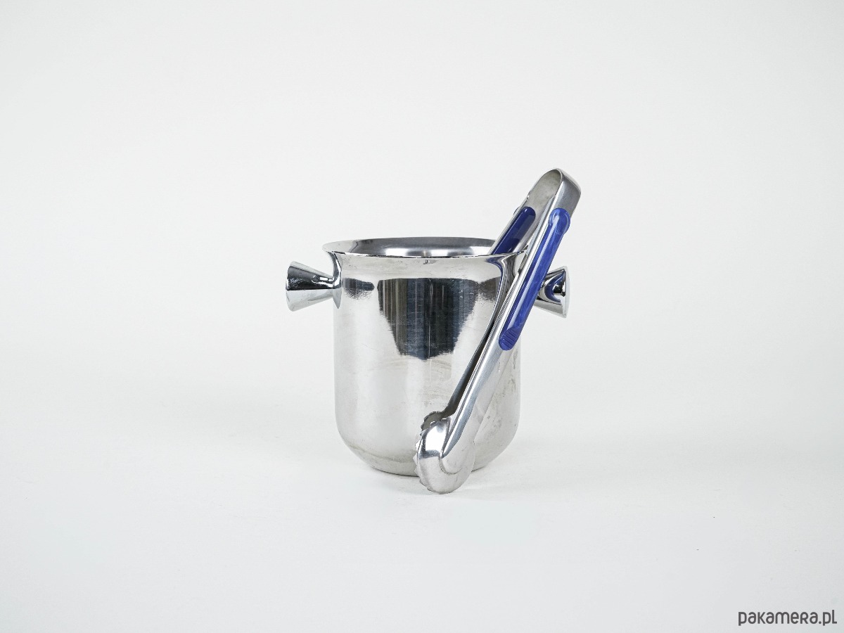 Wykonane z wysokiej jakości stali nierdzewnej 18/10, odpornej na korozję i zarysowania. Lśniąca powierzchnia podkreśla elegancki charakter przedmiotu, a boczne uchwyty zapewniają wygodę użytkowania. W komplecie szczypce z niebieską emalią, dodające całości wyjątkowego charakteru. Klasyczny włoski design lat 60./70., funkcjonalny i dekoracyjny element barku – idealny do serwowania drinków, koktajli i whisky.