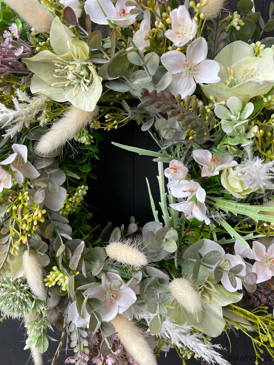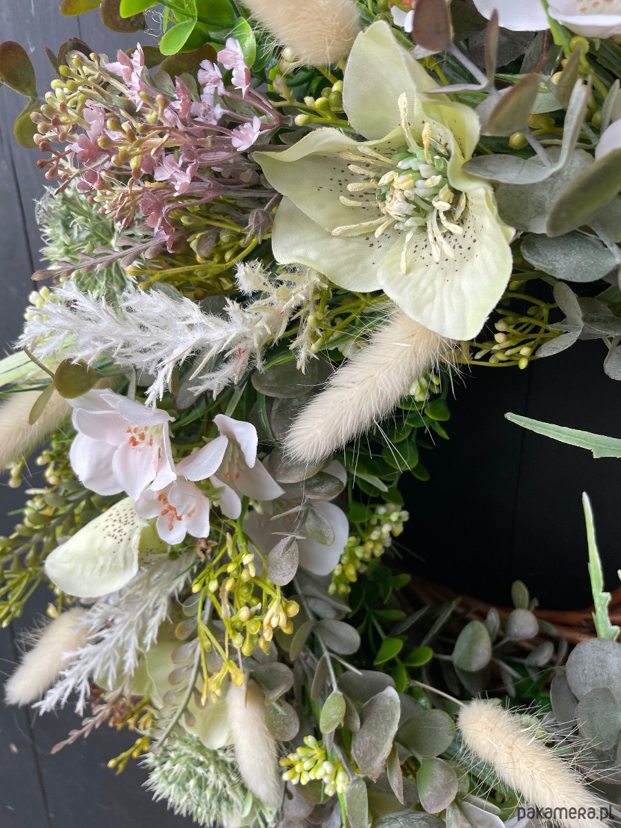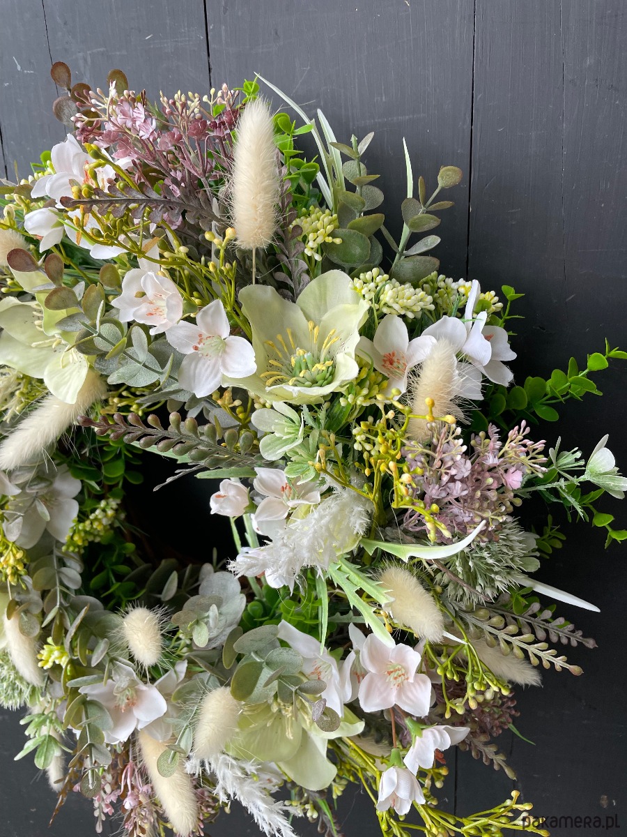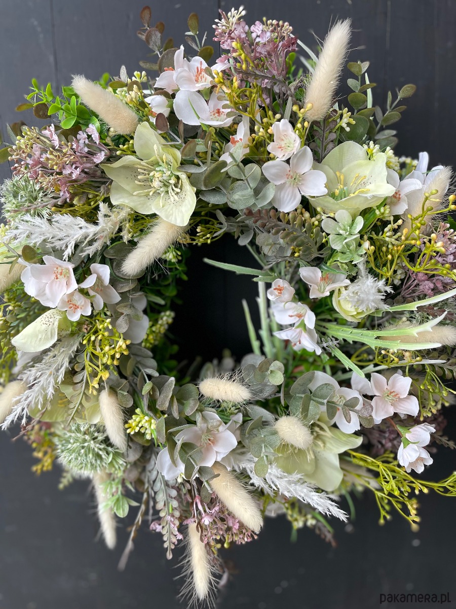 Bogato wypełniony wianek w wiosennym klimacie. Średnica ok 35cm.