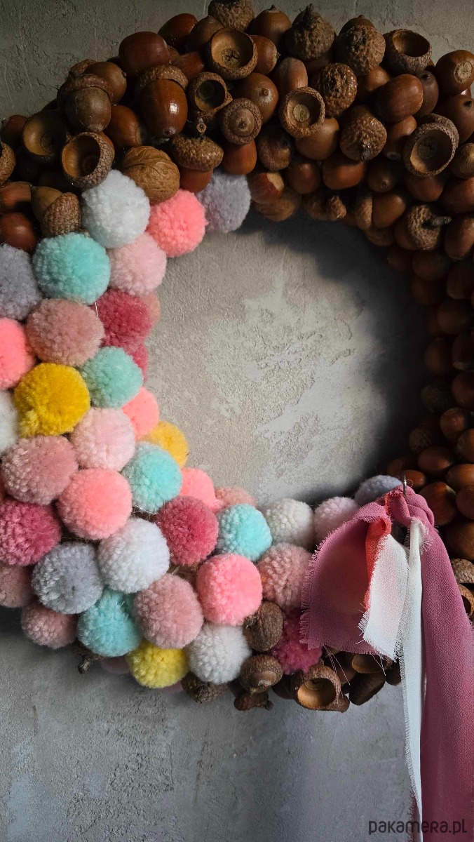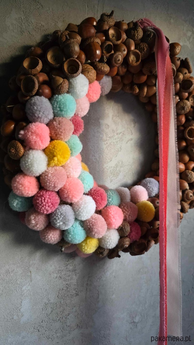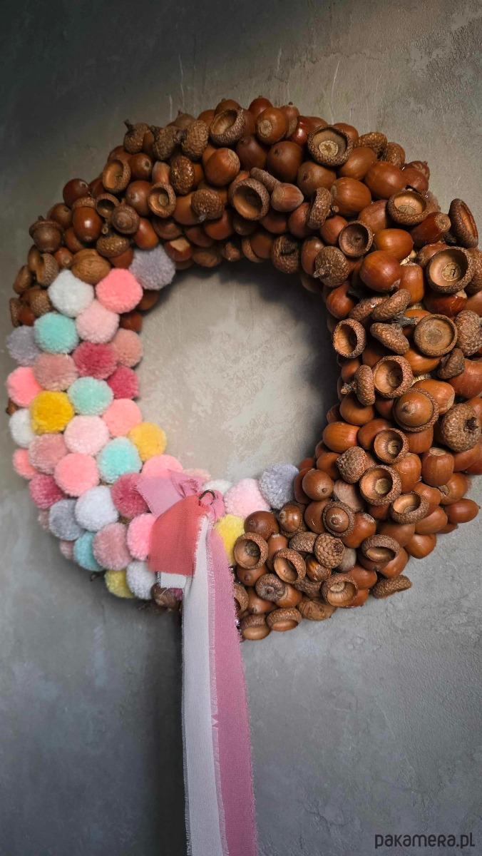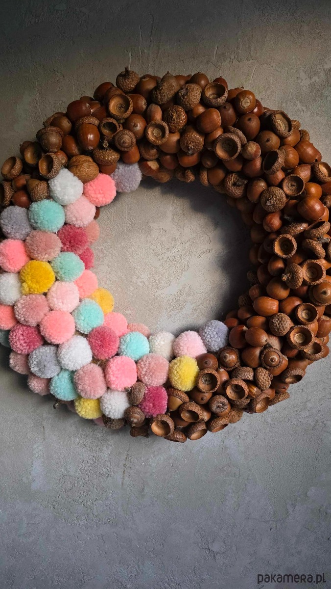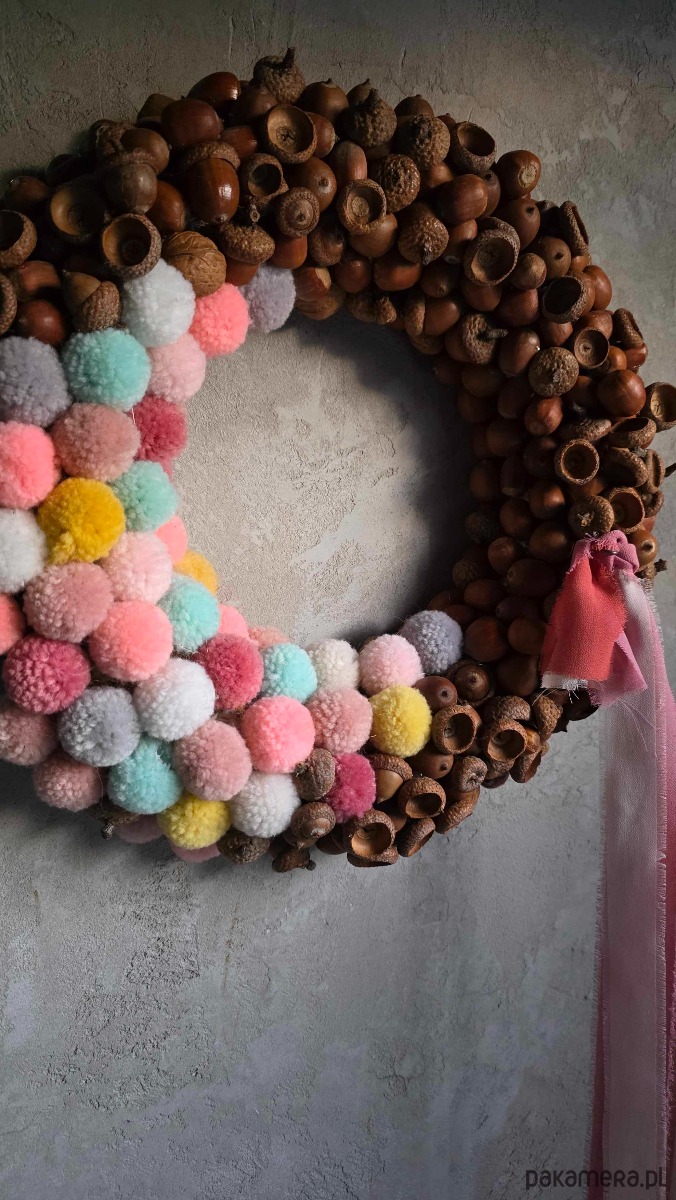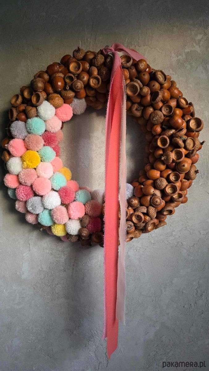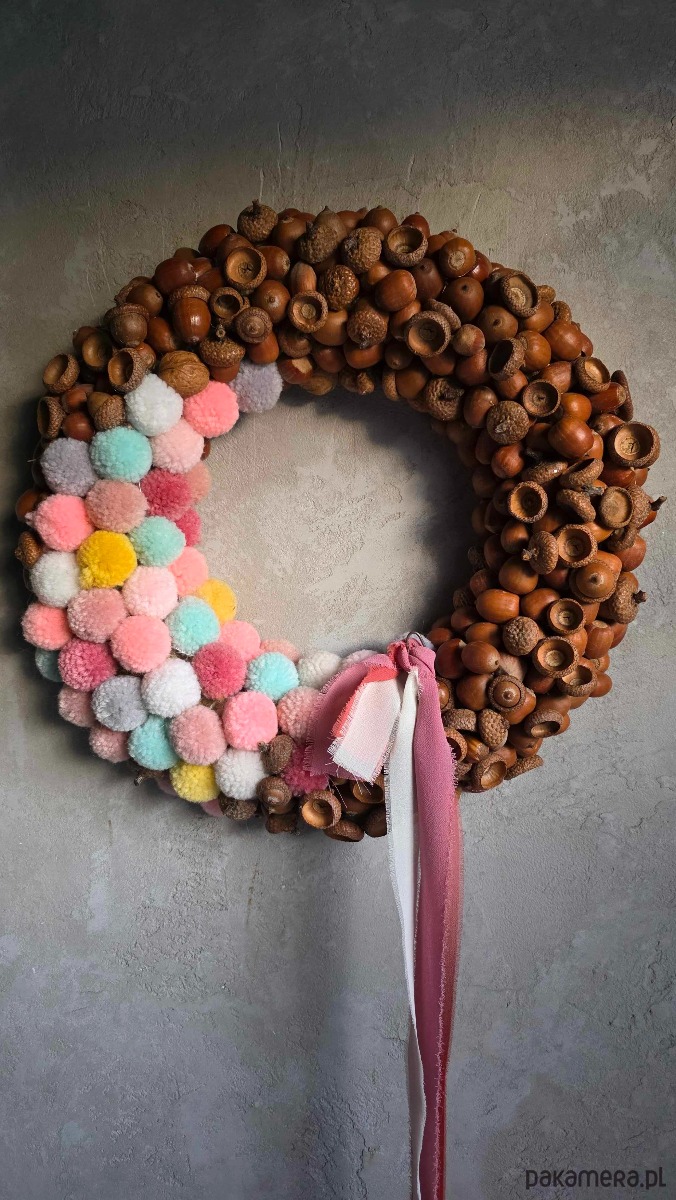 Ręcznie wykonany wianek „Janek” to wyjątkowa dekoracja w stylu boho, stworzona z naturalnych żołędzi oraz delikatnych, pastelowych pomponików. Każdy egzemplarz powstaje z dbałością o najmniejszy detal, dlatego jest unikalny i jedyny w swoim rodzaju.