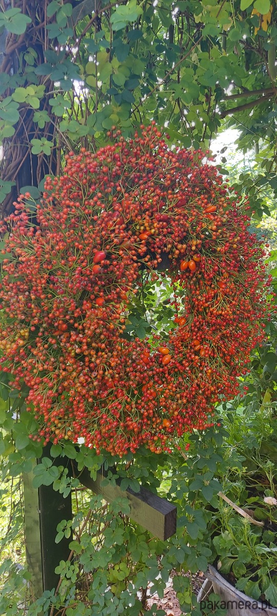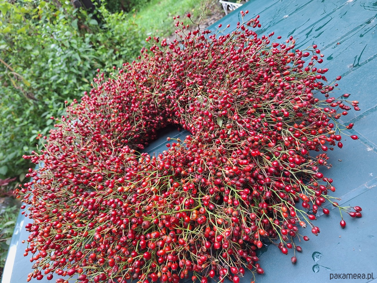 Z czasem się przebarwi i zasuszy.Średnica około 55 cm.Do wianka wykorzystałam dzika róża .