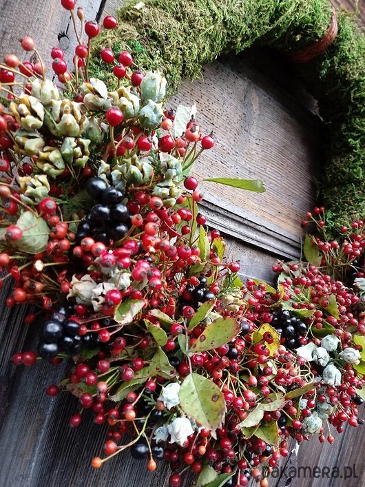 Z czasem się przebarwi i zasuszy.Średnica około 50 cm.Do wianka wykorzystałam ,dziką różę .