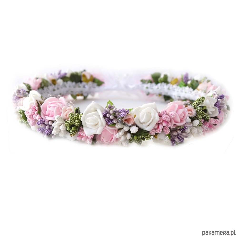 Wianek komunijny kwiaty białe, fioletowe, różowe zielone__ KOMUNIA, SESJA, ŚLUB ___