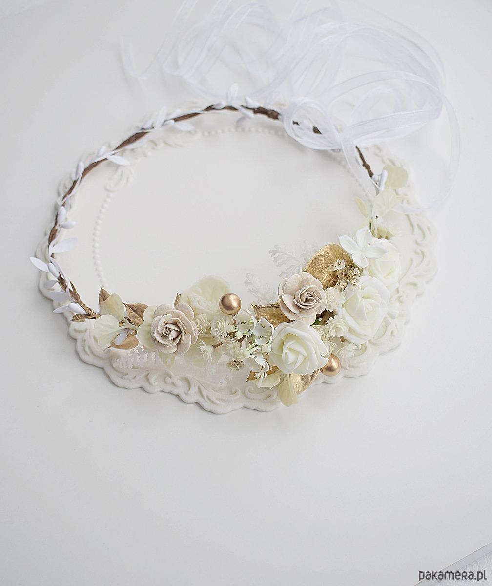 Wianek komunijny dla dziewczynki krem, biel złoto