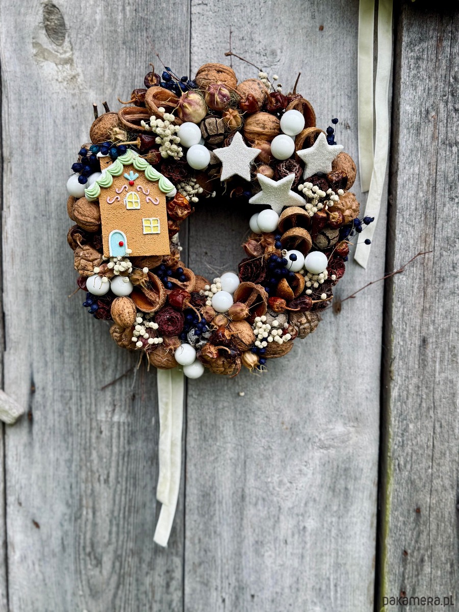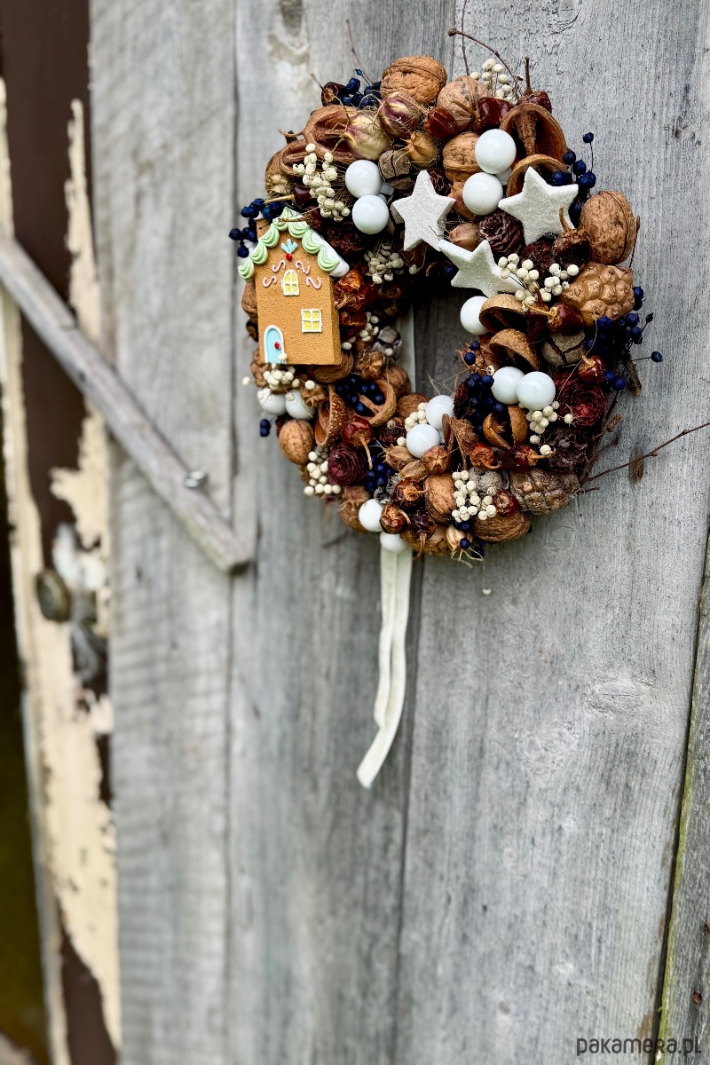 Na koniec wszystko zabezpieczam warstwami kleju i lakieru w spreju.Dlatego wianek powinien posłużyć Ci przez lata.