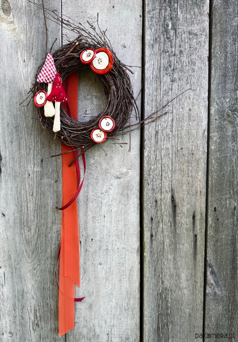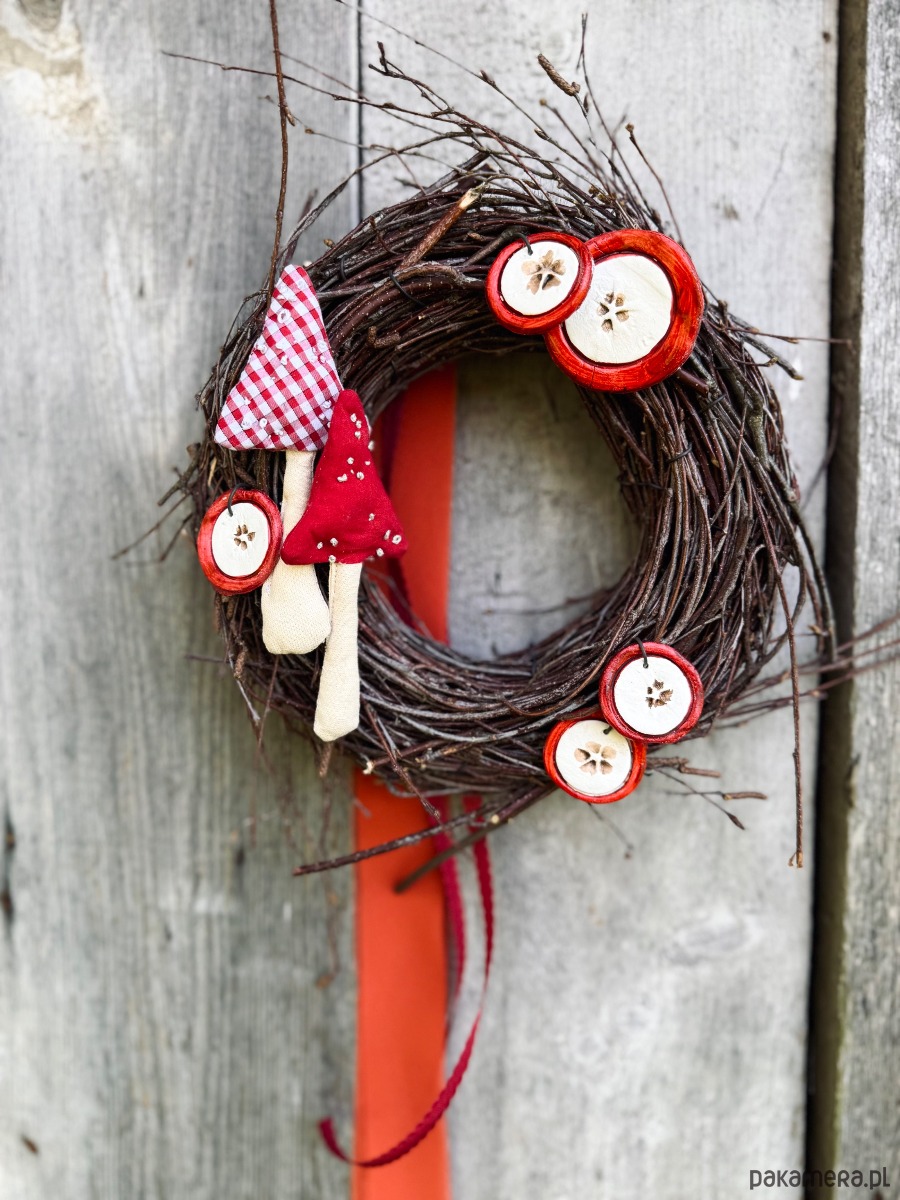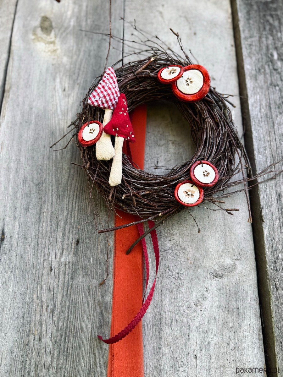 Do tego dwa bawelniane grzybki i plastry jabłek ulepione z glinki.