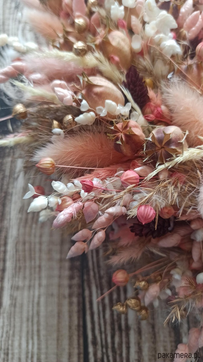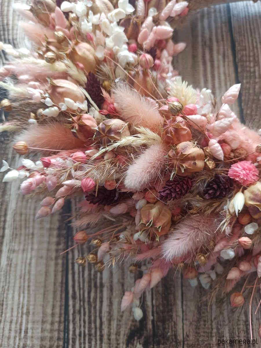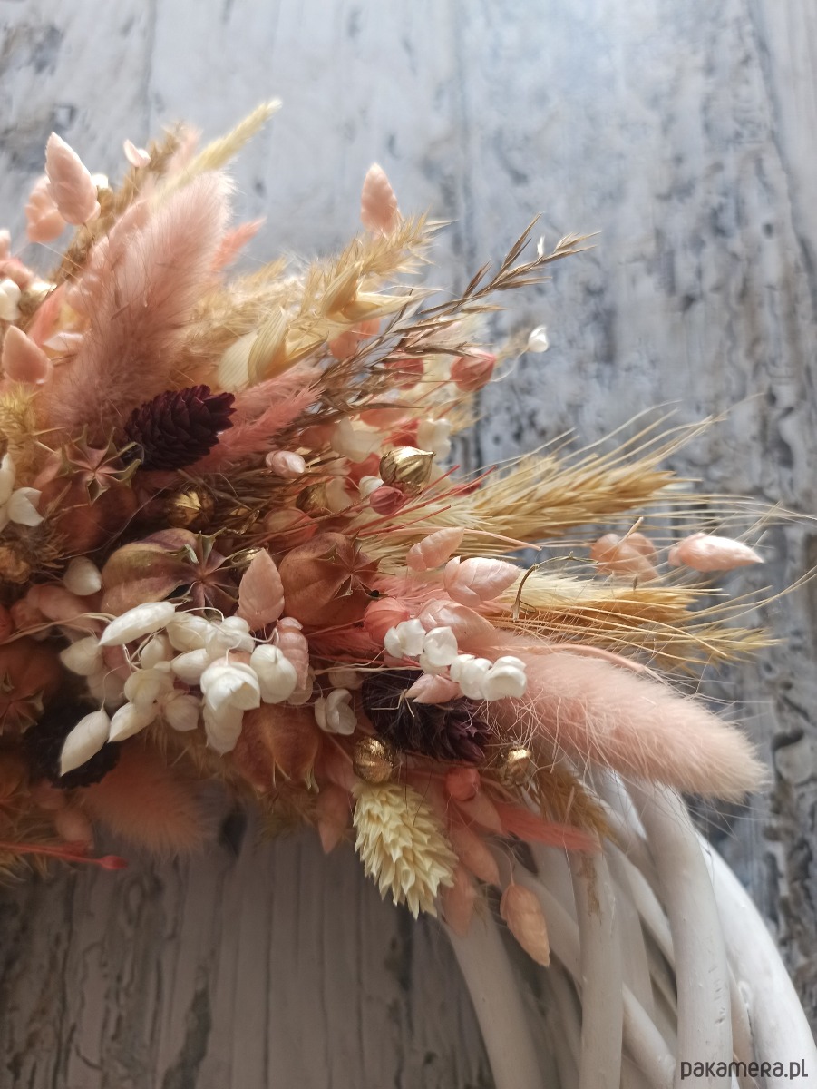 - Materiał: suszone kwiaty, wiklina, gałązki