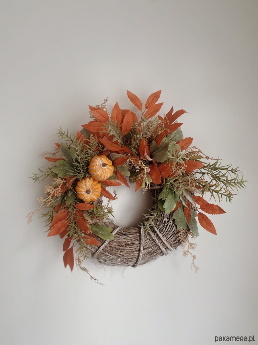 Wianek na wiklinowej bazie z ozdobną dynią:) średnica ok 35 cm