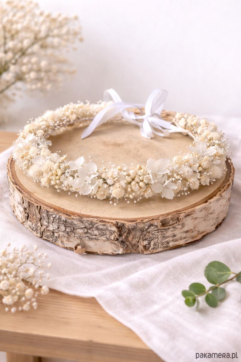 Wianek na głowę z roślinności suszonej i stabilizowanej.