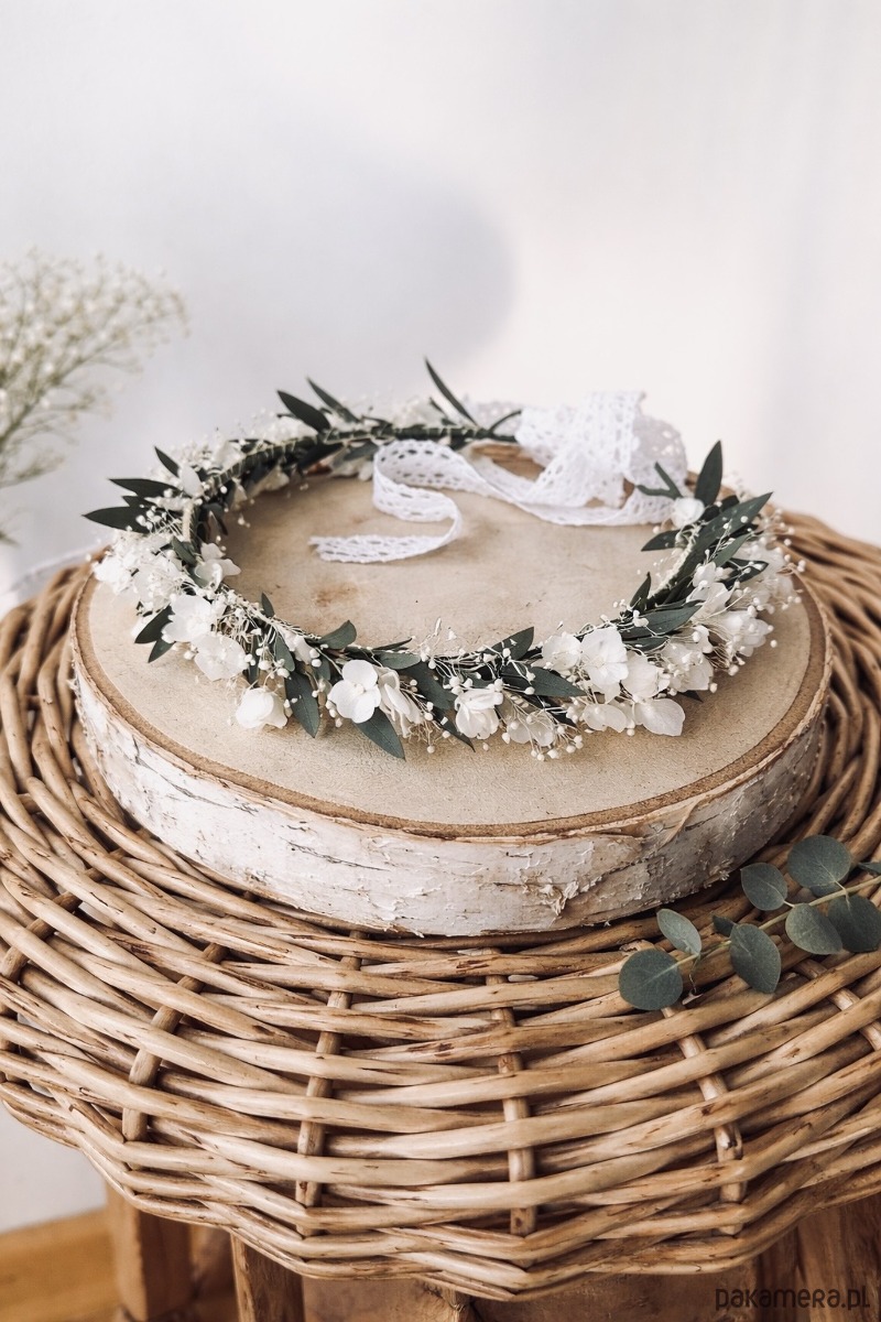 Wianek na głowę eukaliptus gipsówki mini Hortensja