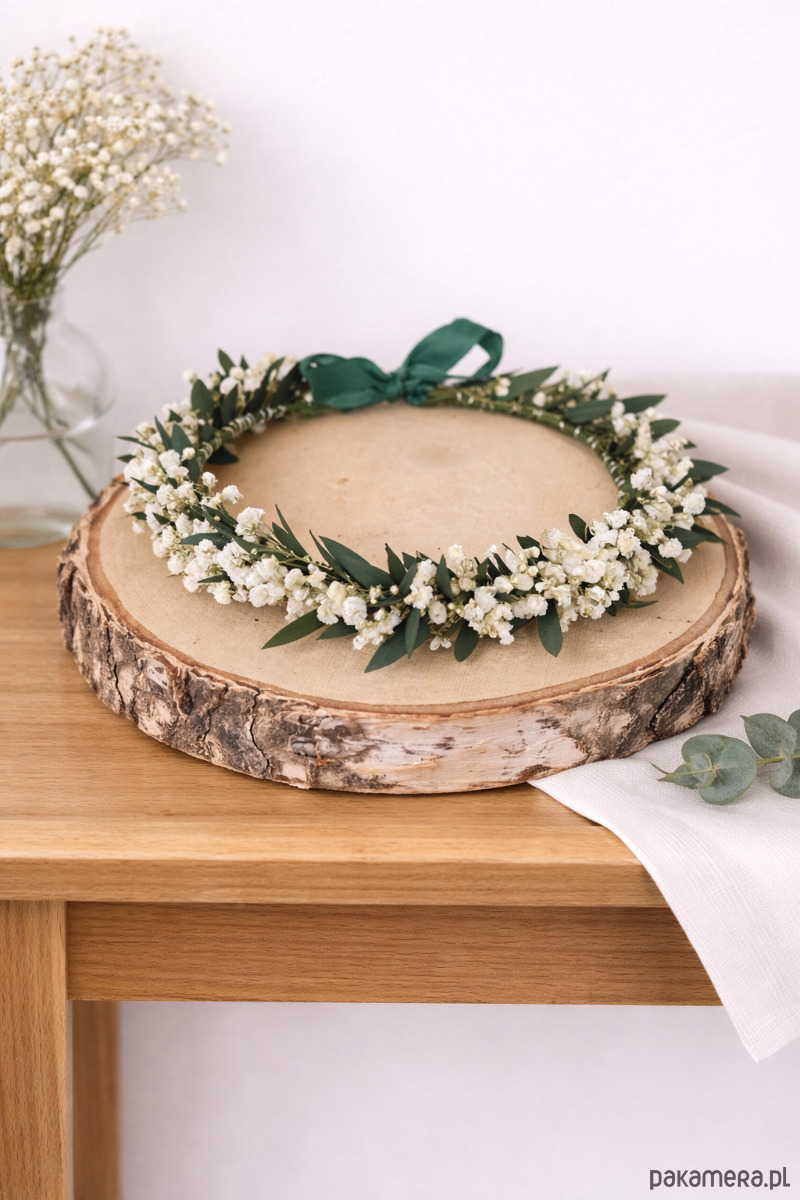 Wianek na głowę eukaliptus i gipsówki