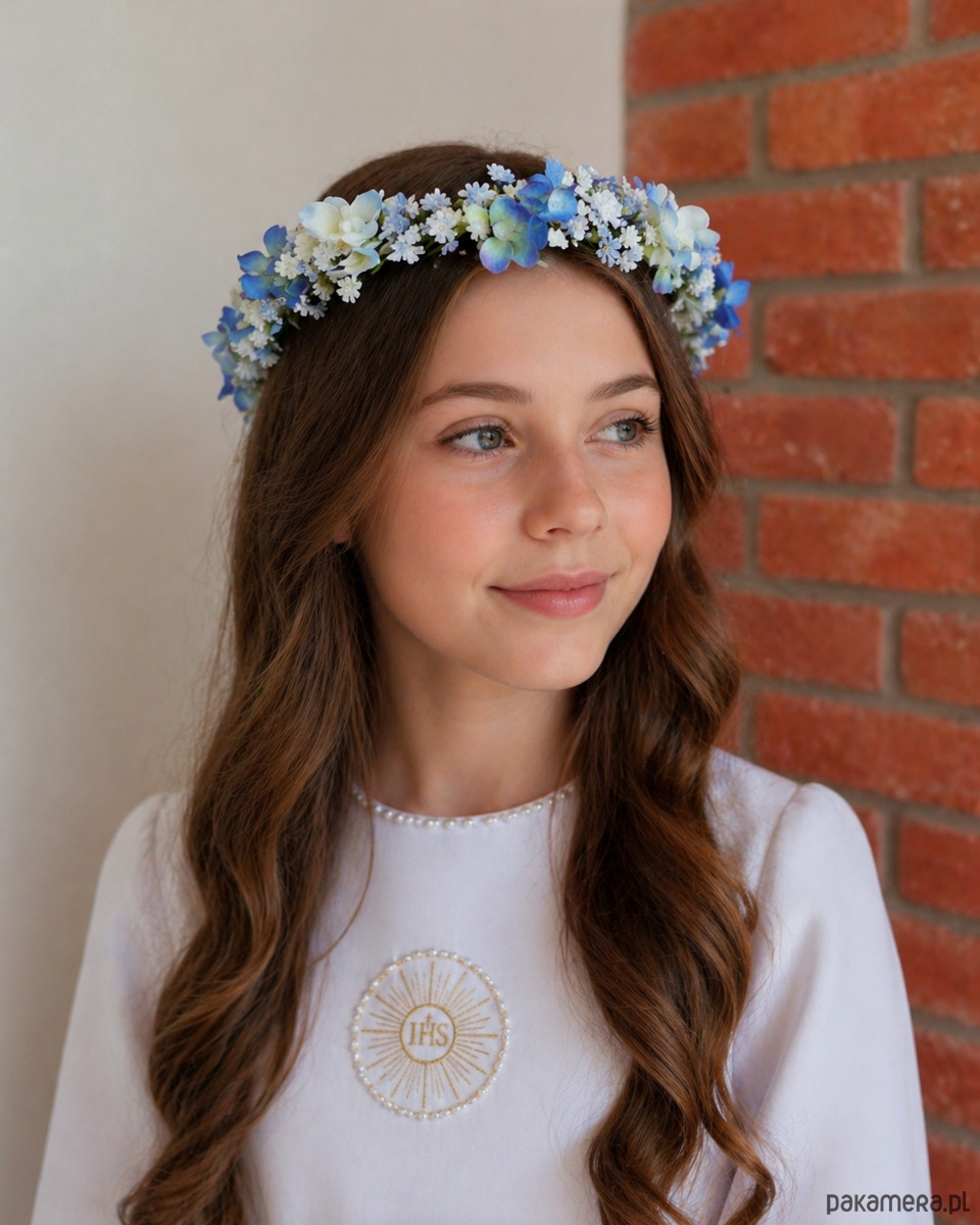 Delikatny wianek komunijny z nutą błękitu 💙