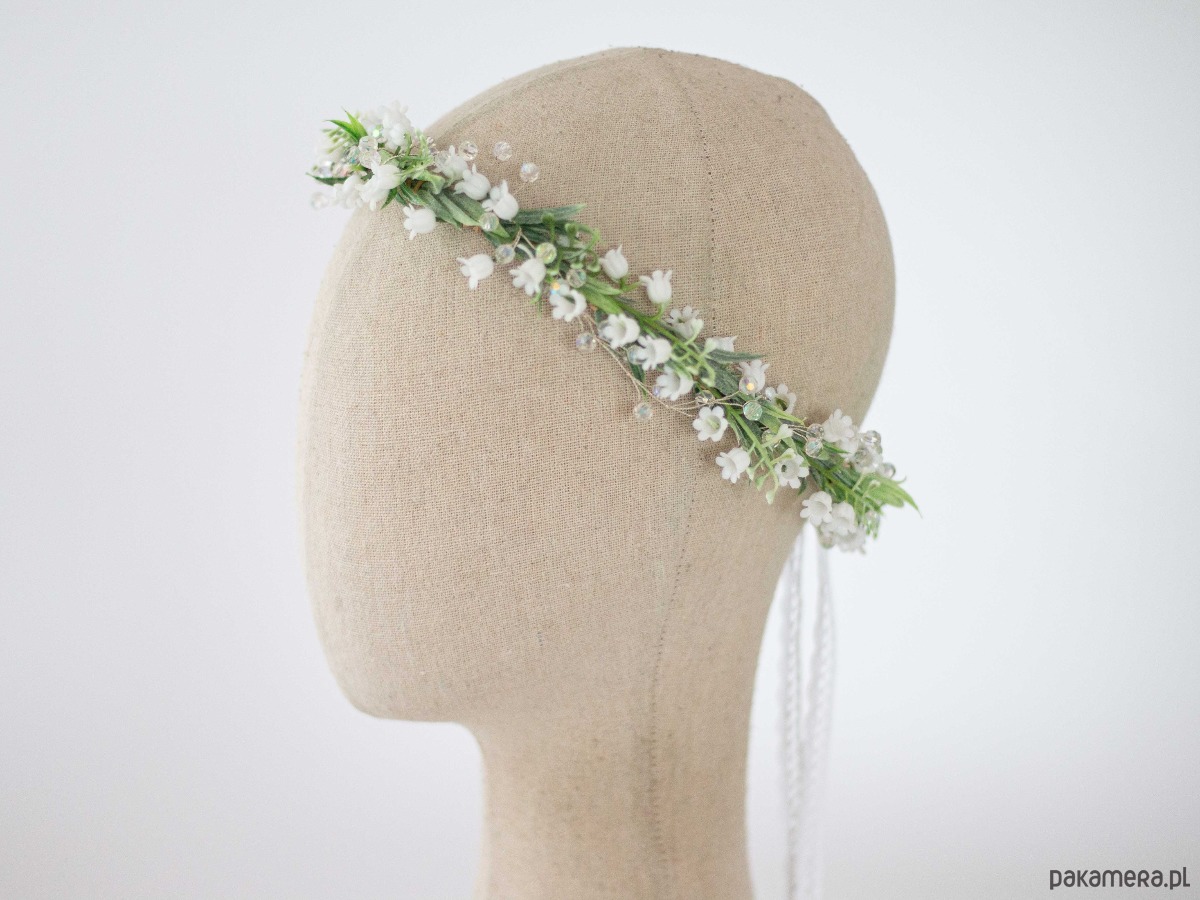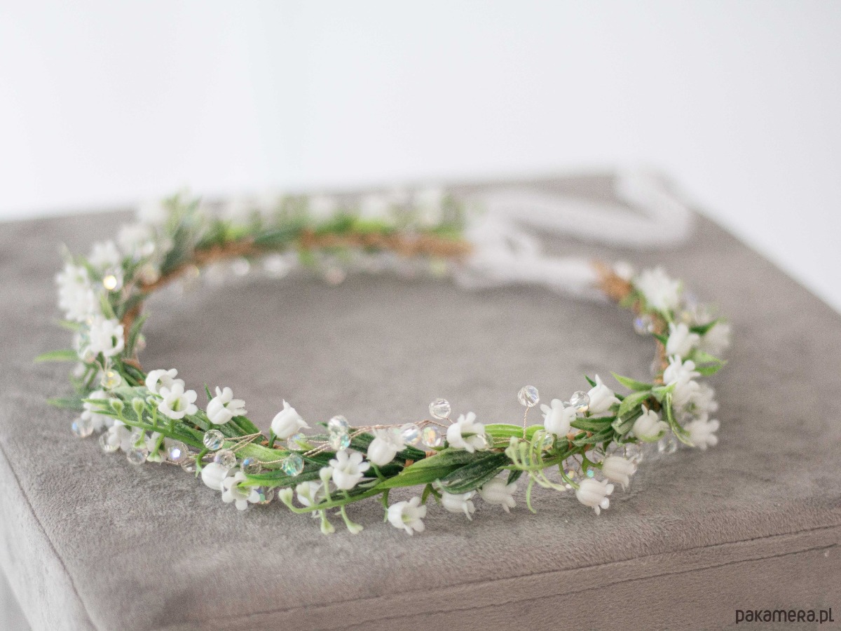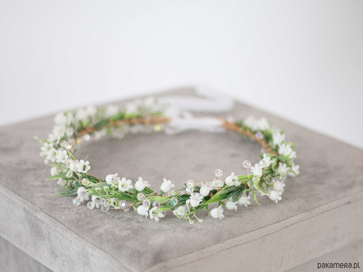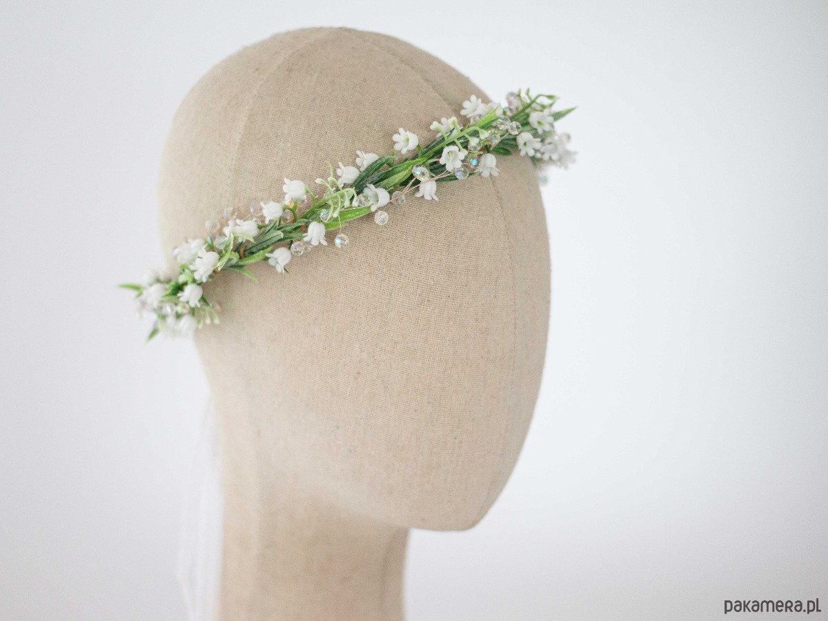 Wianek na głowę konwalie i kryształki