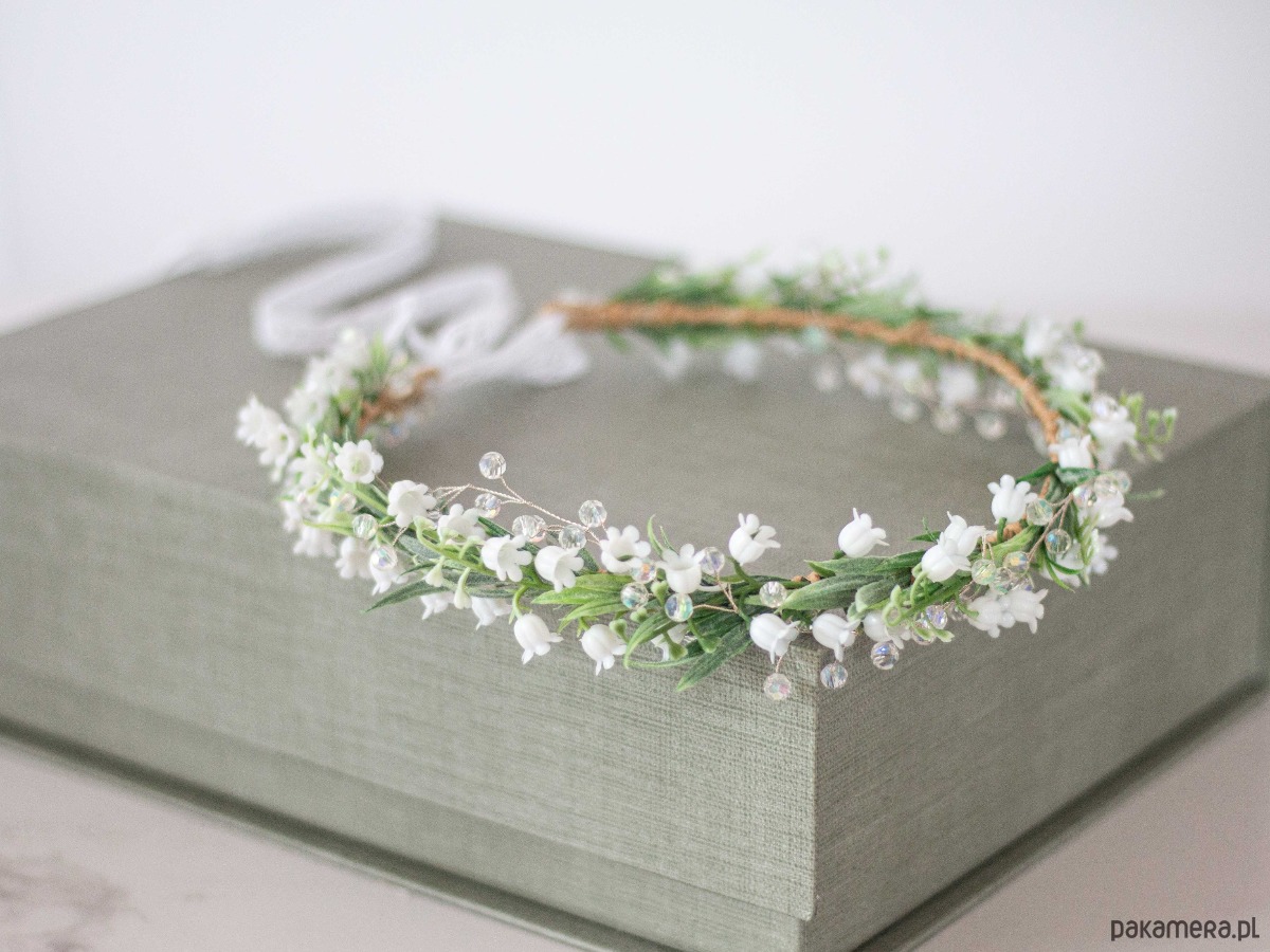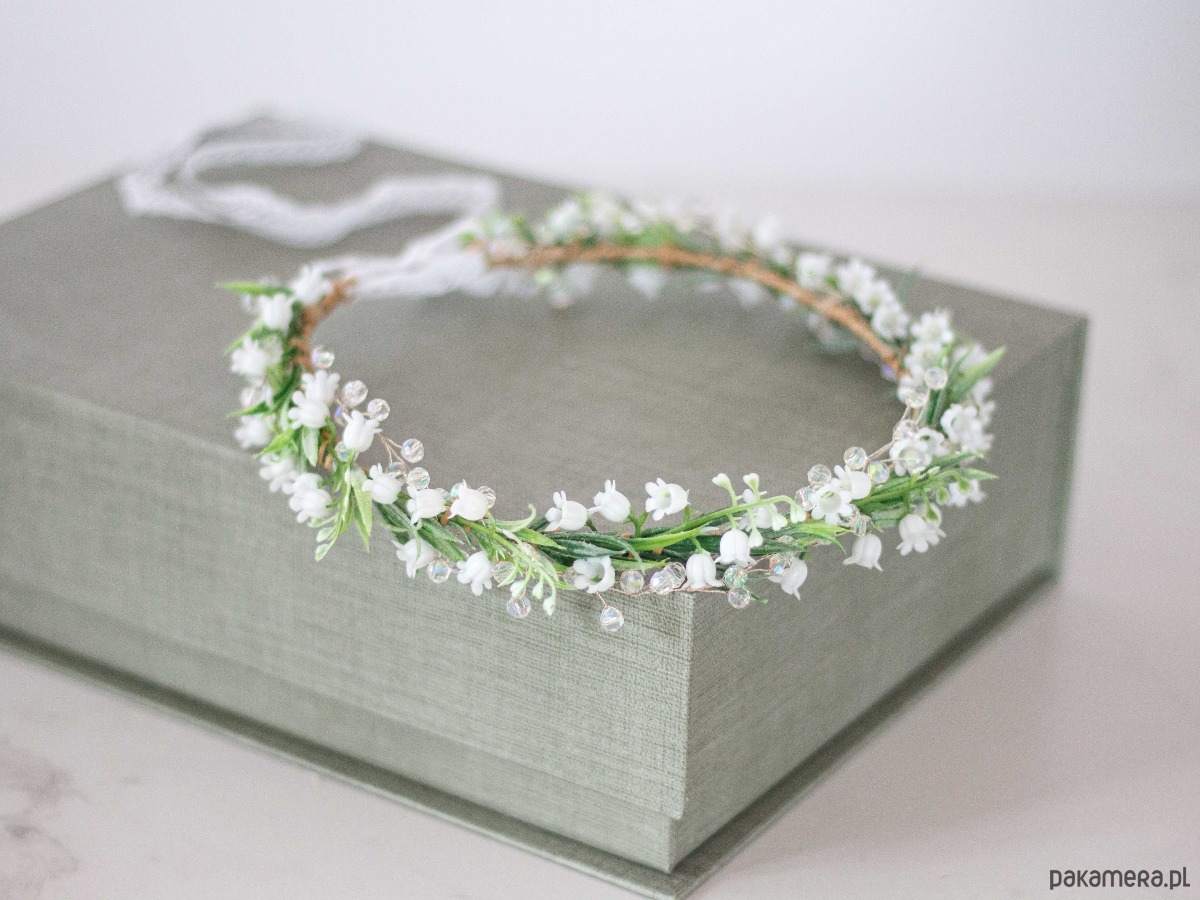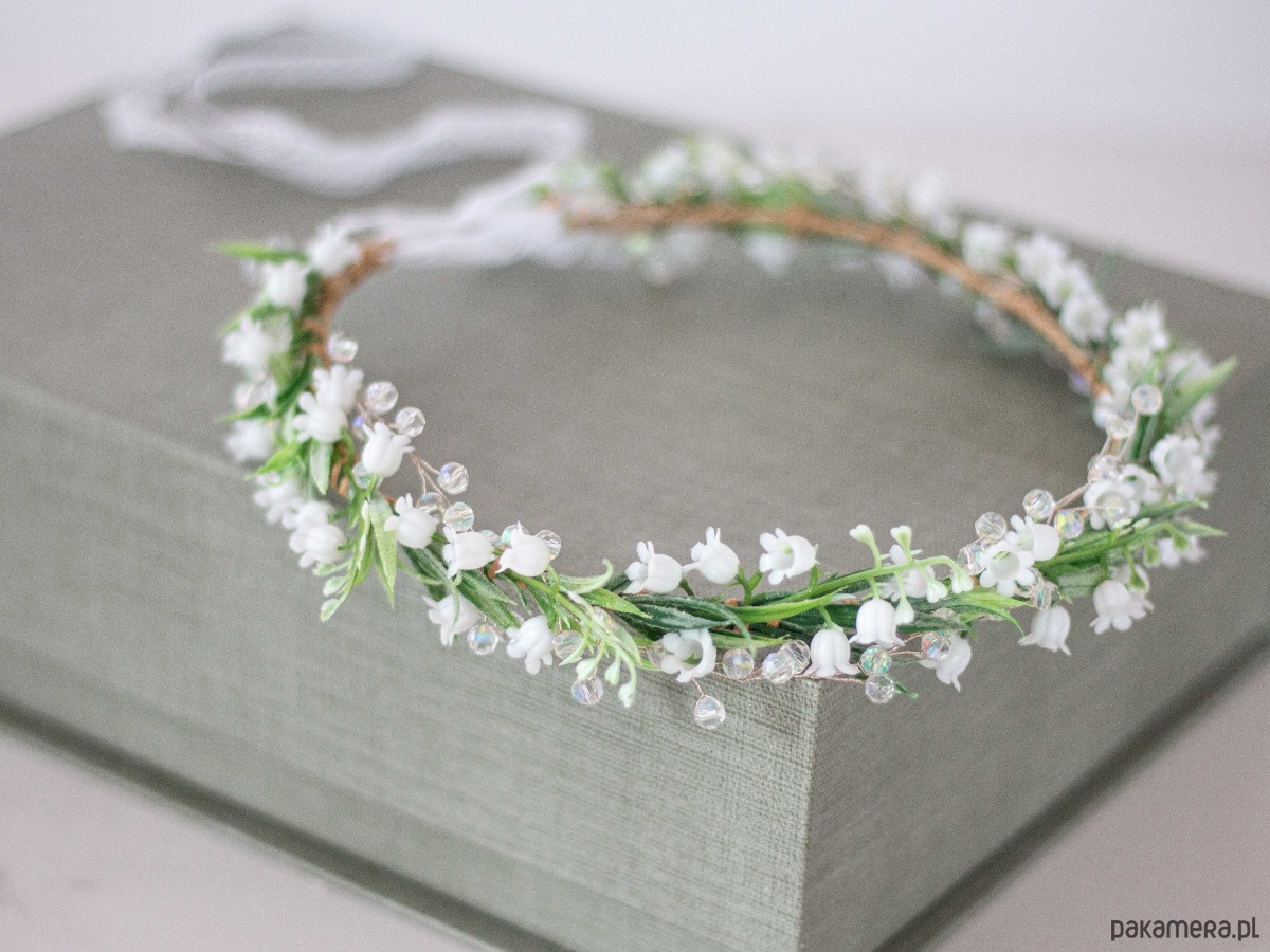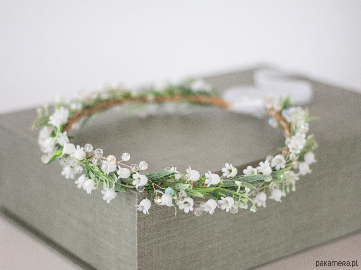 Wianek na głowę konwalie i kryształki