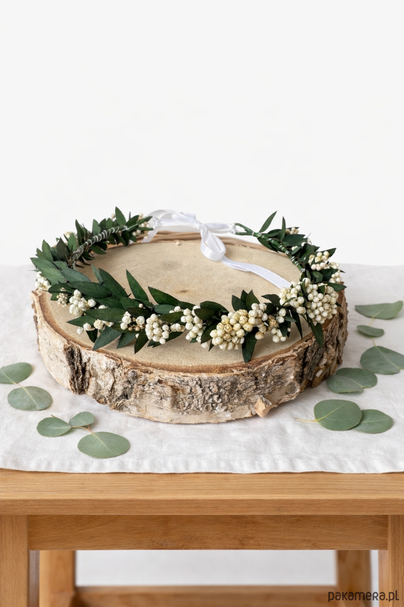 Wianek na głowę z roślinności suszonej i stabilizowanej.
