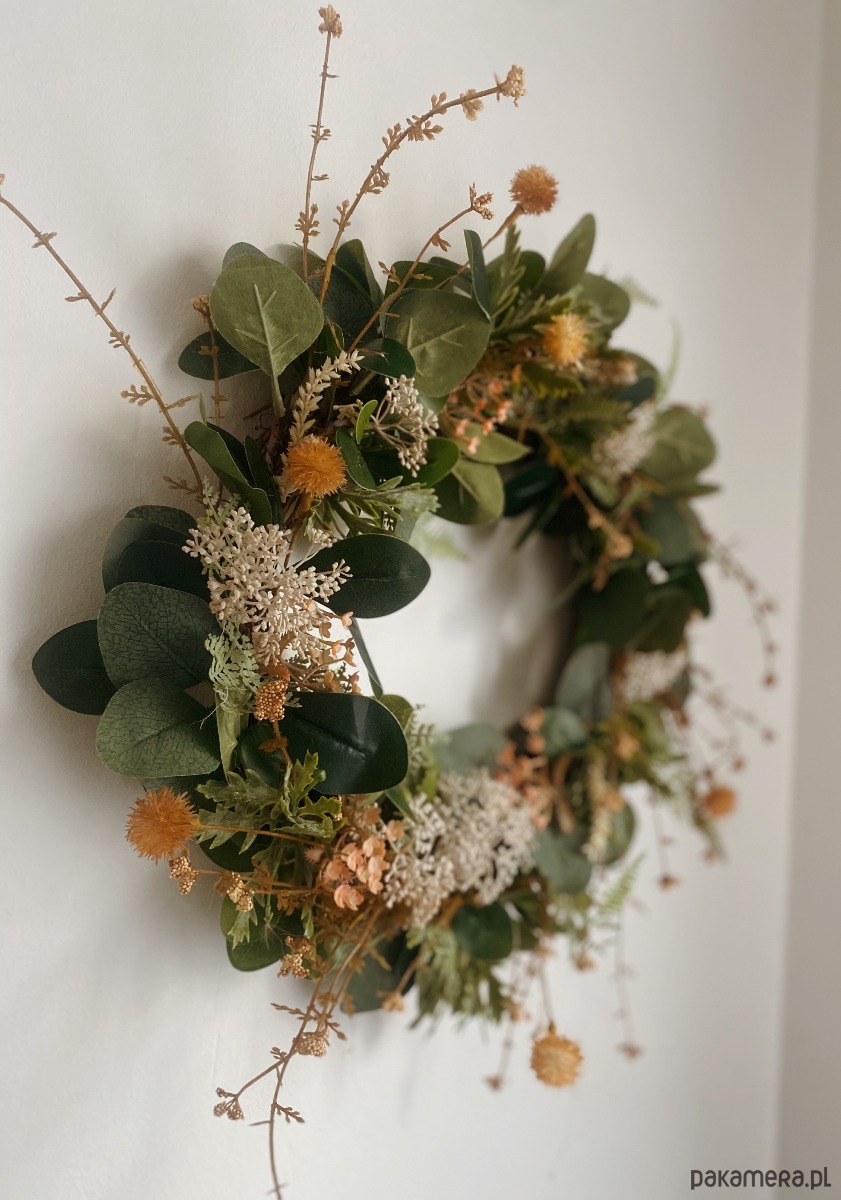 jesienny wianek na drzwi o średnicy ok 33 cm