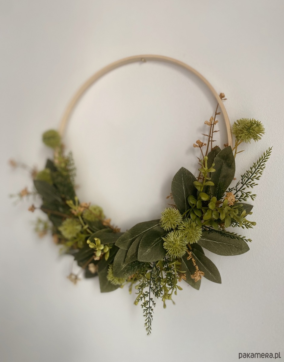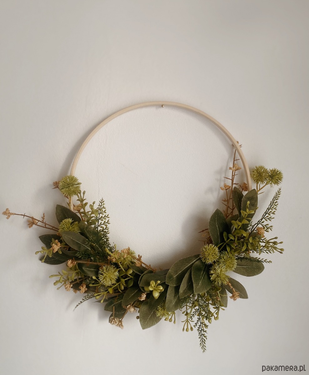 Wianek na drewnianym ringu z polnymi dekoracjami . Średnica ok 30 cm