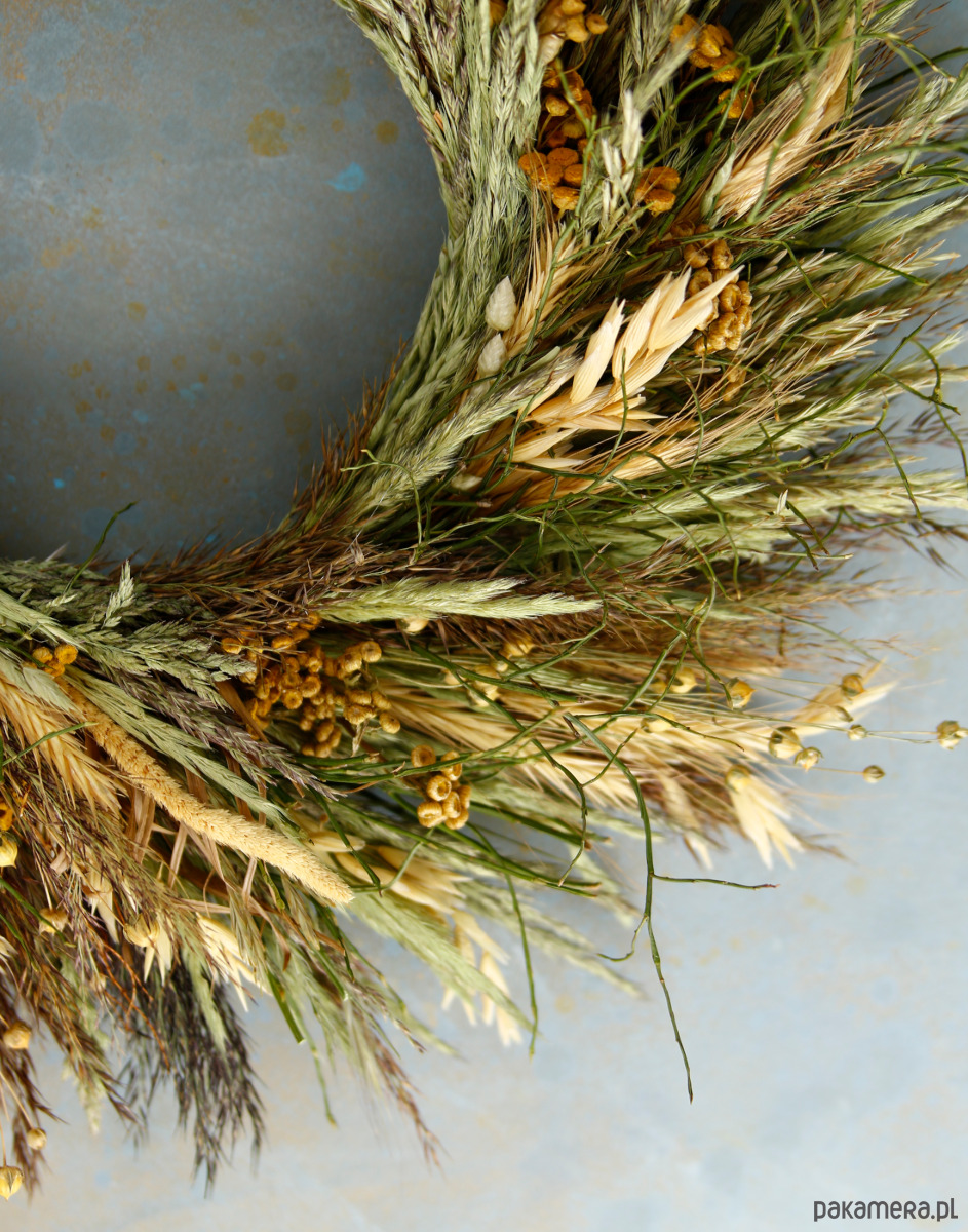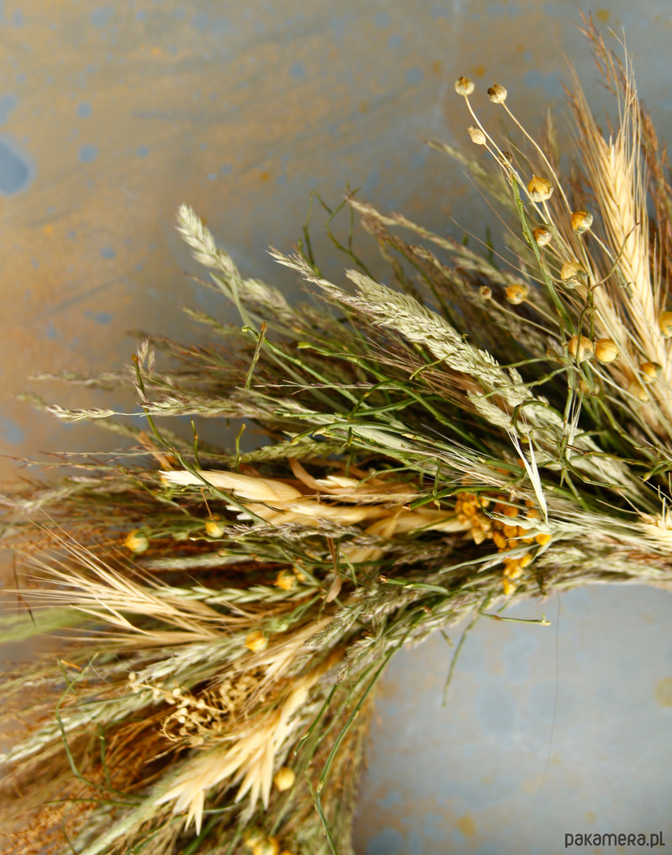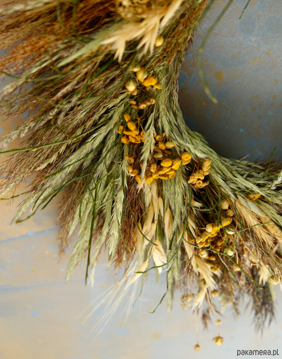 Materiał: naturalne, suszone rośliny: len, trawy polne, borowina, zboże, trzcina, wrotycz, drżączka, lepidium