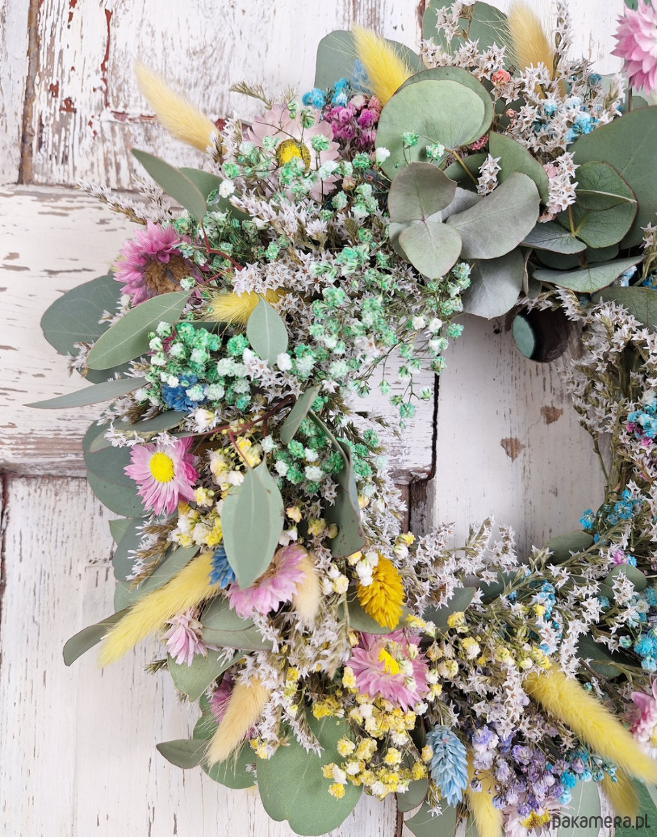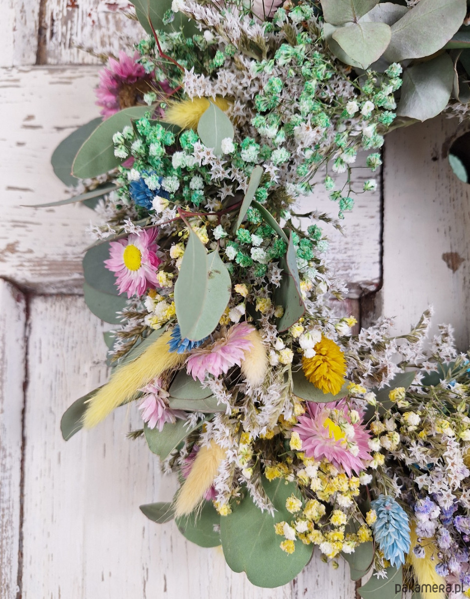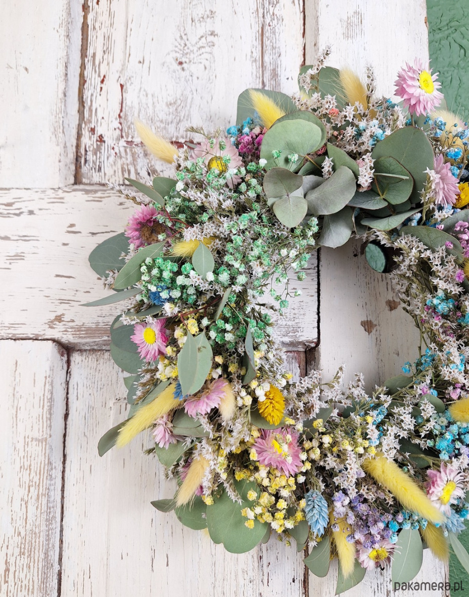 Wianek naturalny z suszonych kwiatów i eukaliptusa "Szept Łąki"