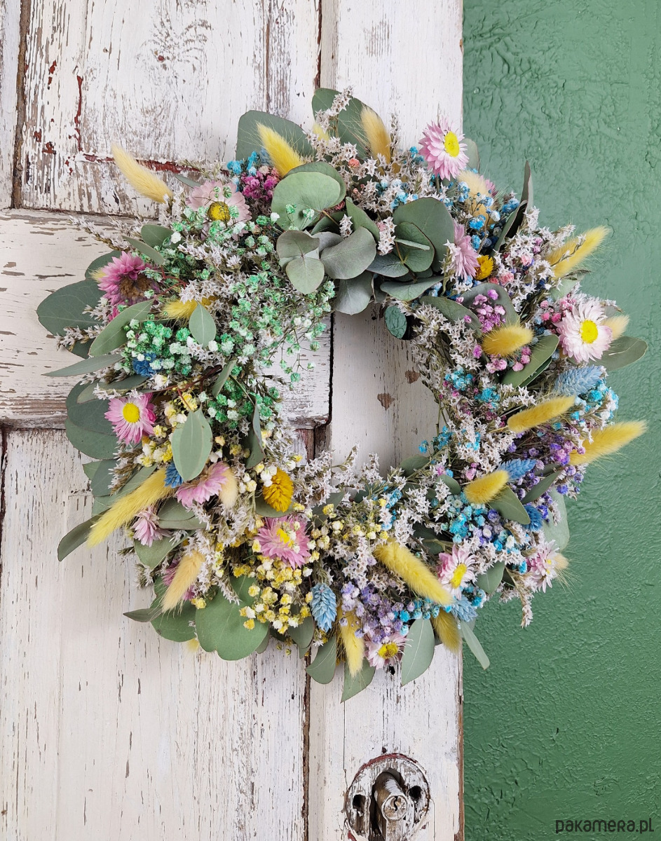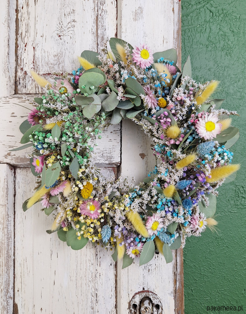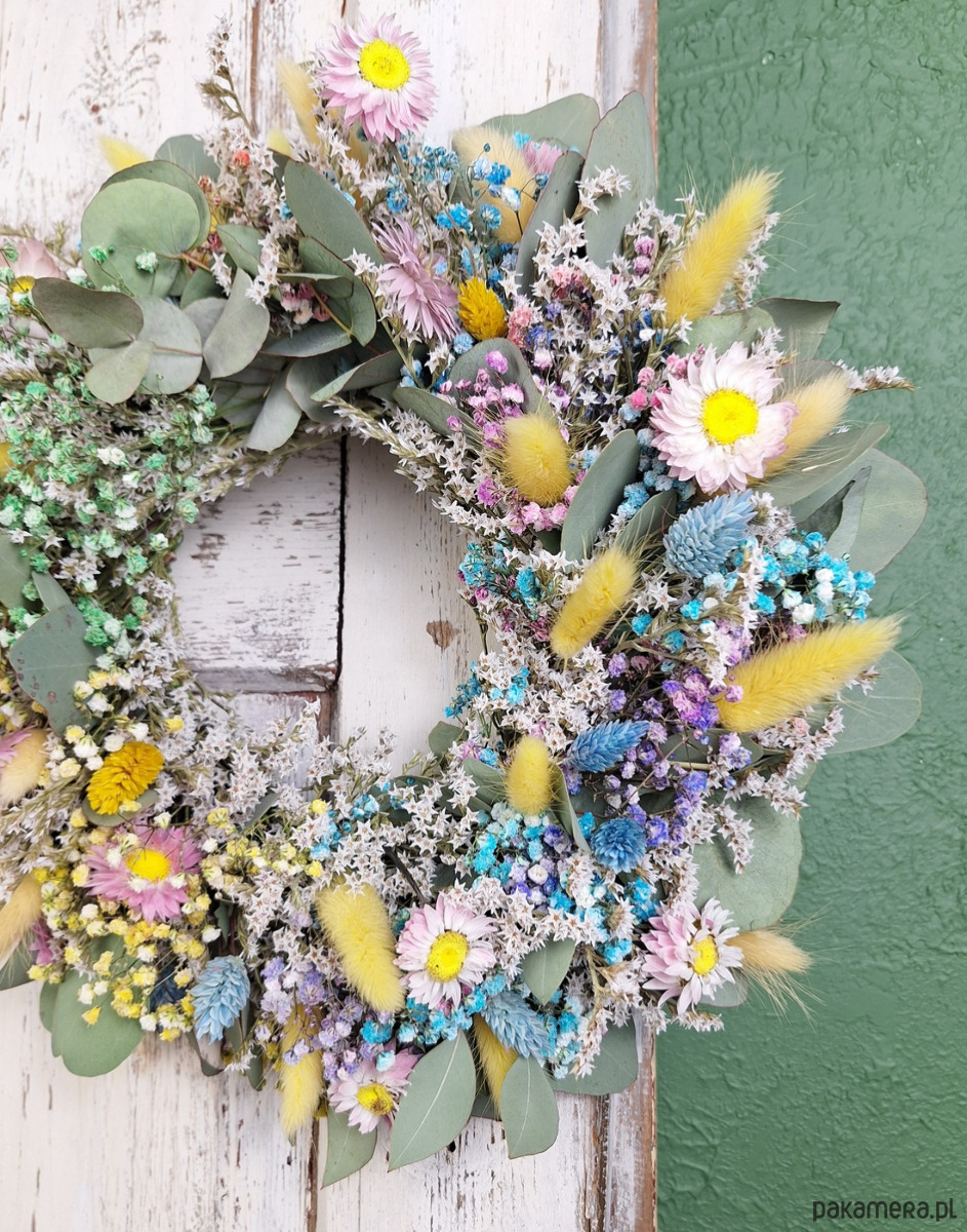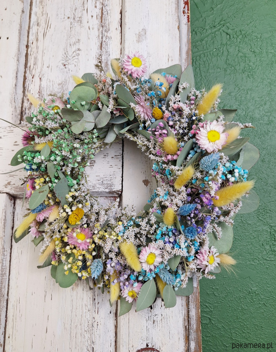 Wianek naturalny z suszonych kwiatów i eukaliptusa "Szept Łąki"