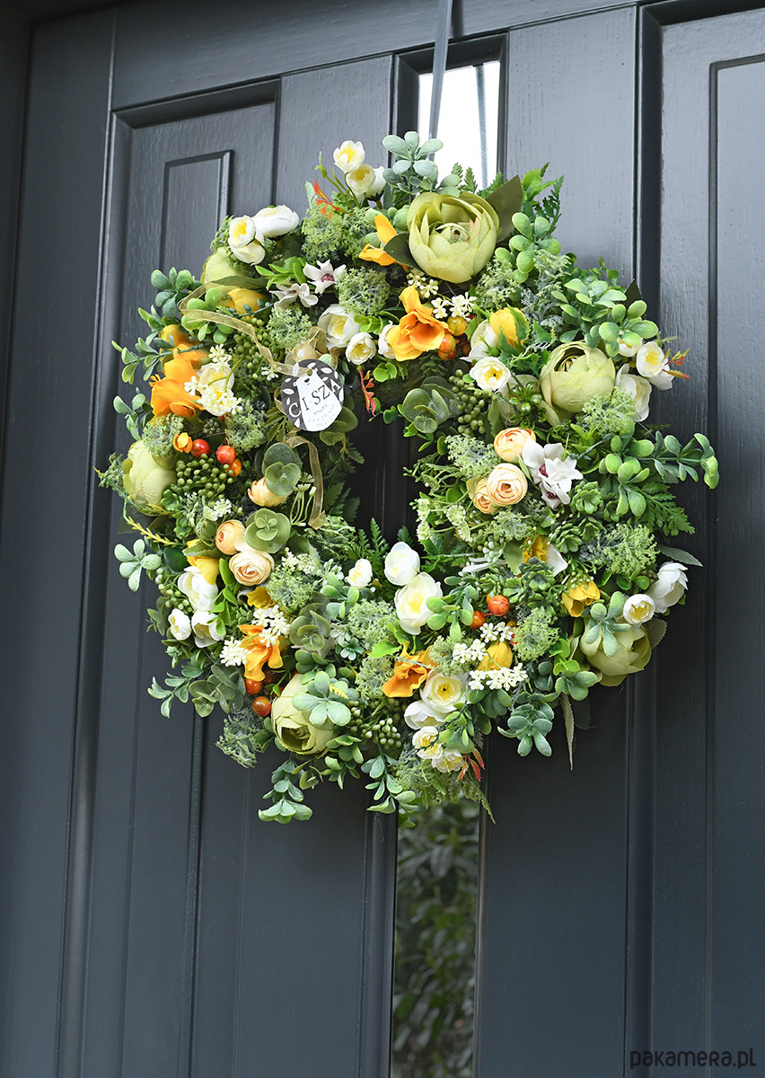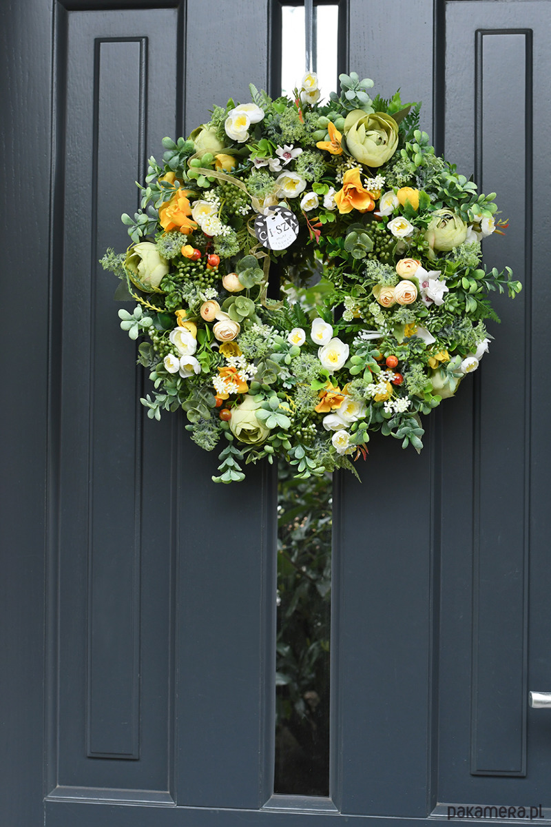 Wianek do zawieszenia na drzwiach o średnicy 45 cm. Zapakowany w ozdobny kartonik może być doskonałym prezentem:)