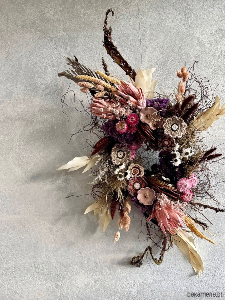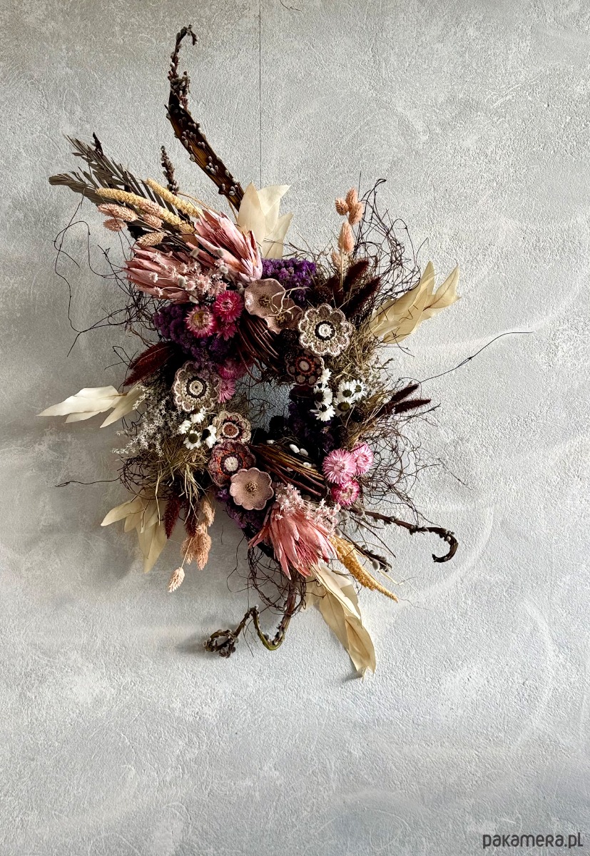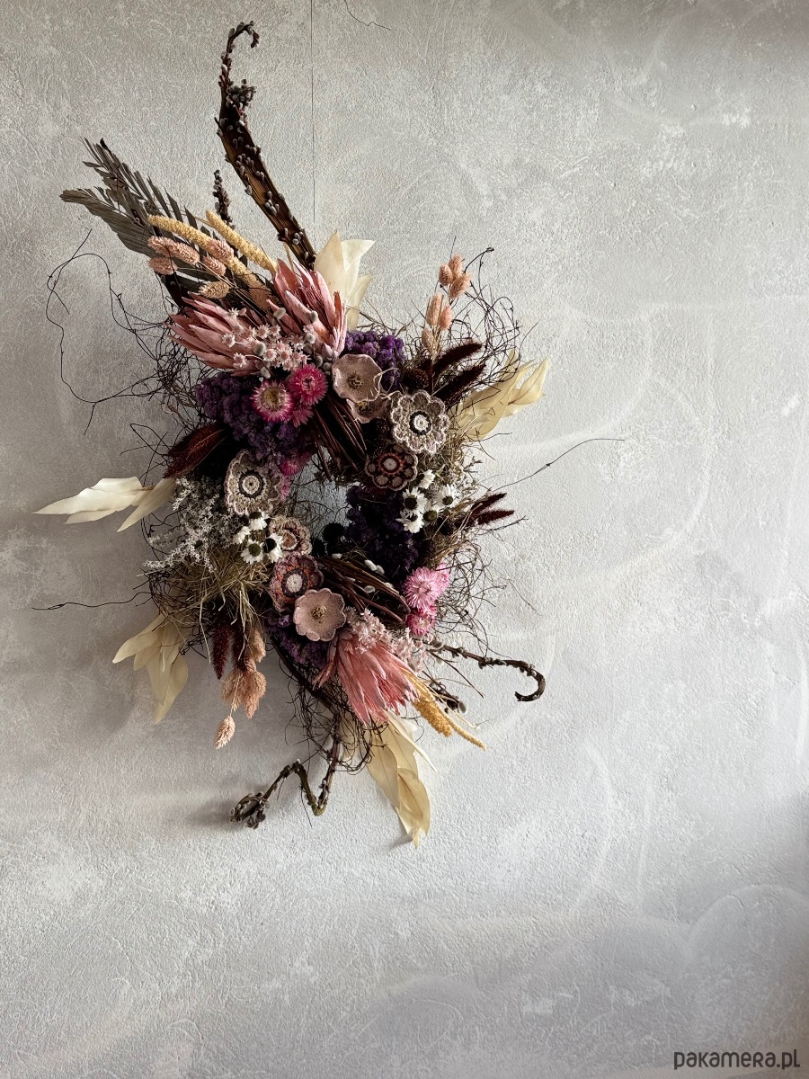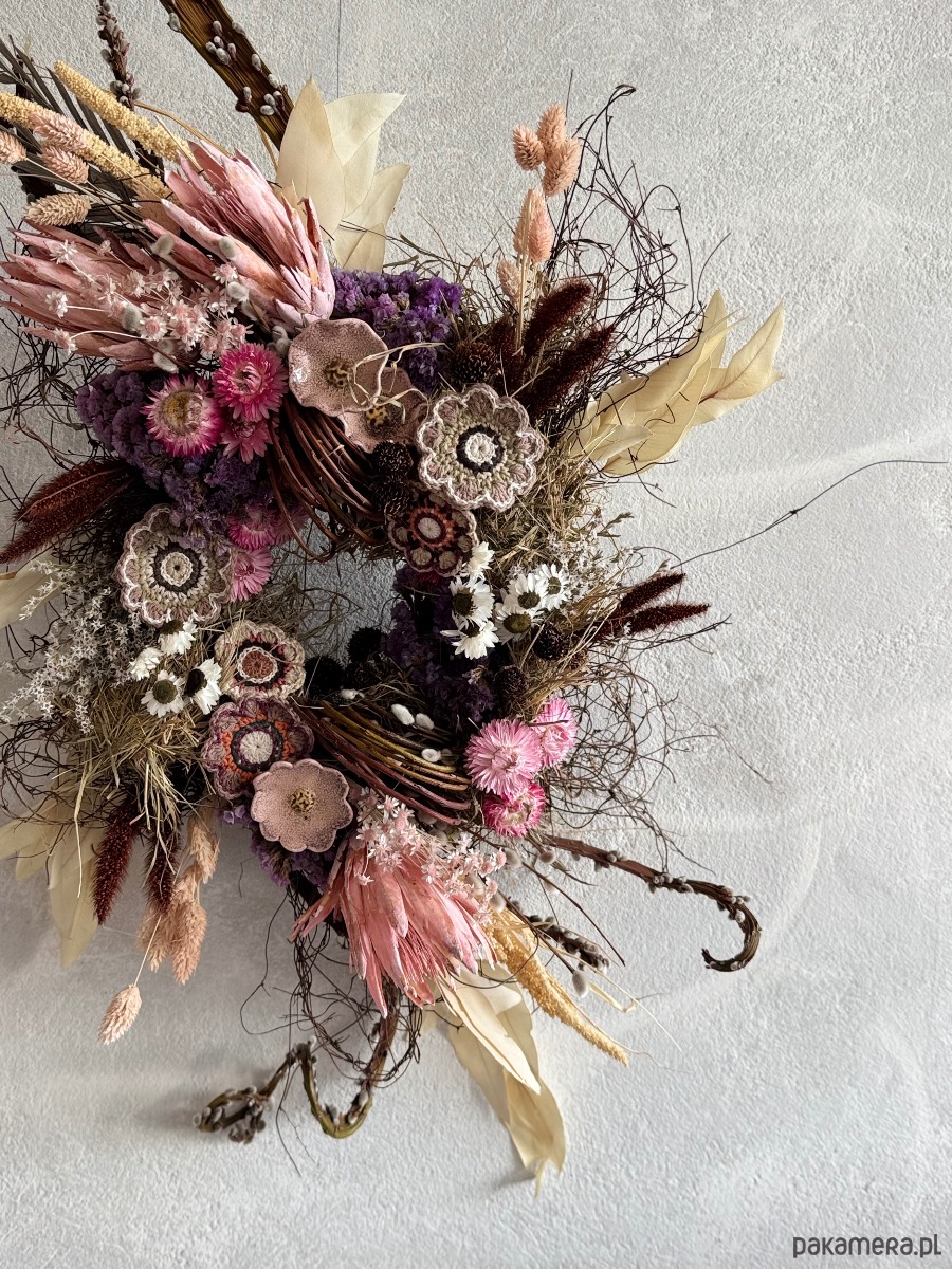 - Materiał: gałązki, suszone kwiaty, sztuczne kwiaty