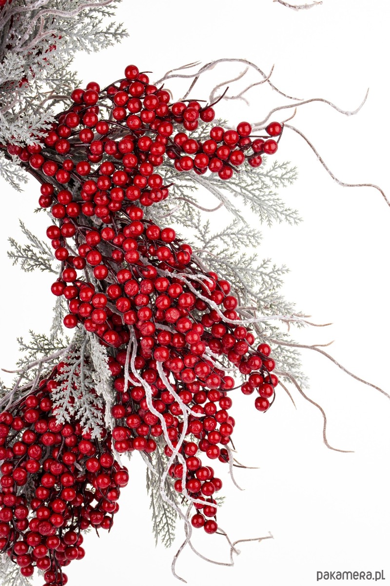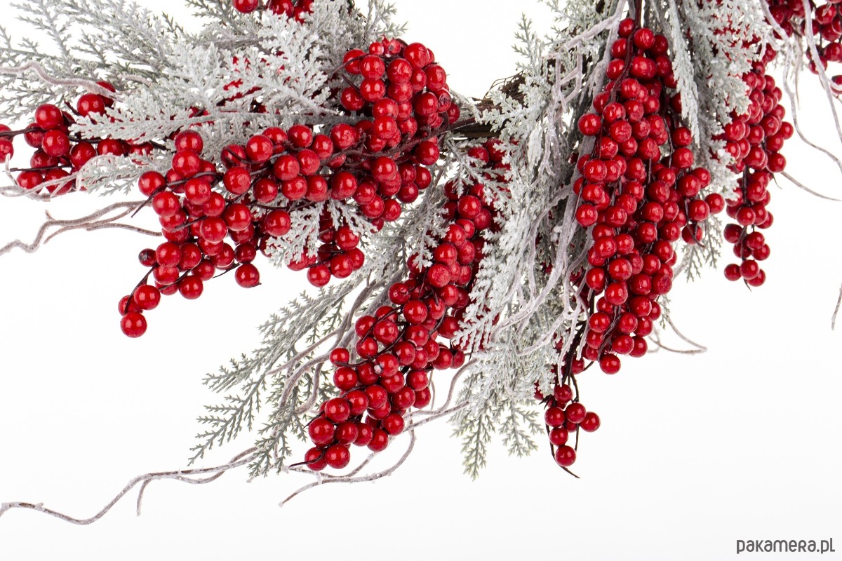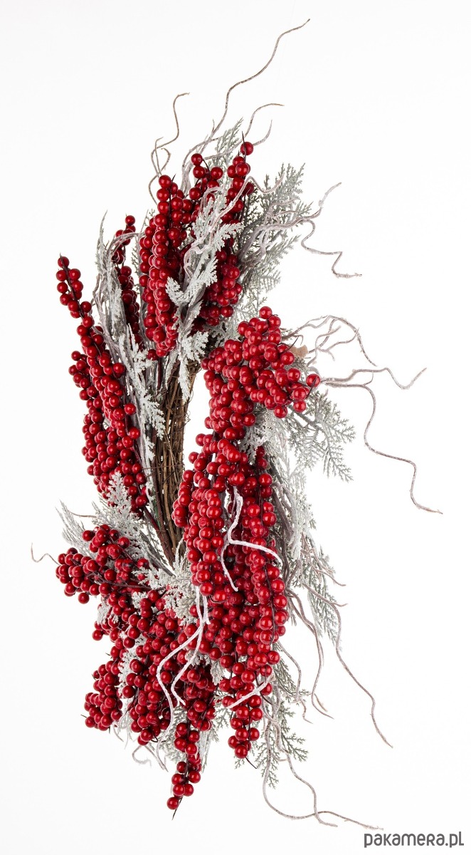Elegancki wianek bożonarodzeniowy, który wprowadzi świąteczny nastrój do każdego domu. Jest idealnym dodatkiem zarówno do zawieszenia na drzwiach, jak również jako dekoracja stołu, tworząc przytulną atmosferę w każdym wnętrzu. Wykonany z wysokiej jakości tworzywa sztucznego jest odporny na uszkodzenia, co zapewnia jego długotrwałe użytkowanie przez wiele sezonów. Starannie dopracowane detale podkreślają jego elegancję.