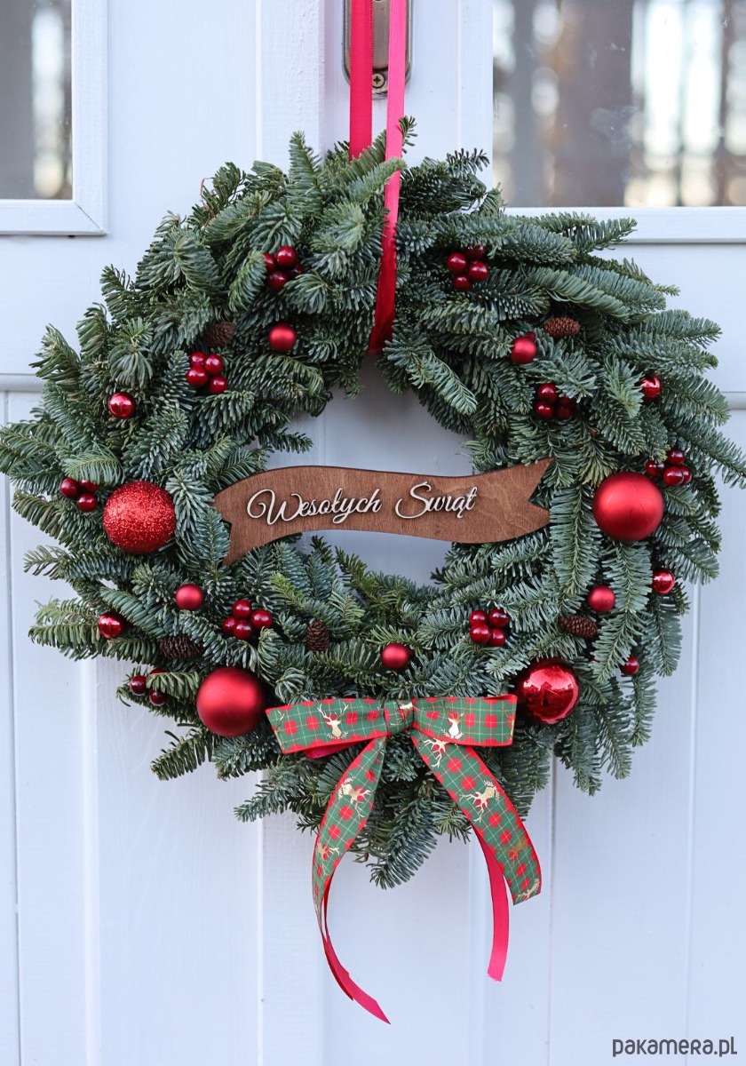 Ręcznie wyplatany, świąteczny wianek z naturalnej jodły nobilis to elegancka dekoracja, która wprowadzi do Twojego domu wyjątkowy, bożonarodzeniowy nastrój. Wykonany z najwyższej jakości gałązek, które nie osypują się i pięknie zasuszają, wianek zachwyci swoją trwałością przez cały sezon świąteczny!