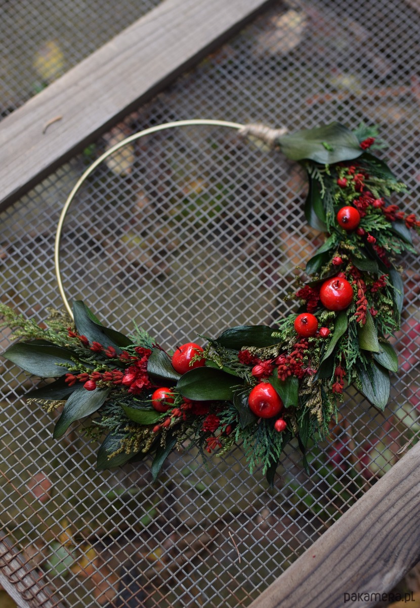 Wianek świąteczny z stabilizowanych i suszonych roślin