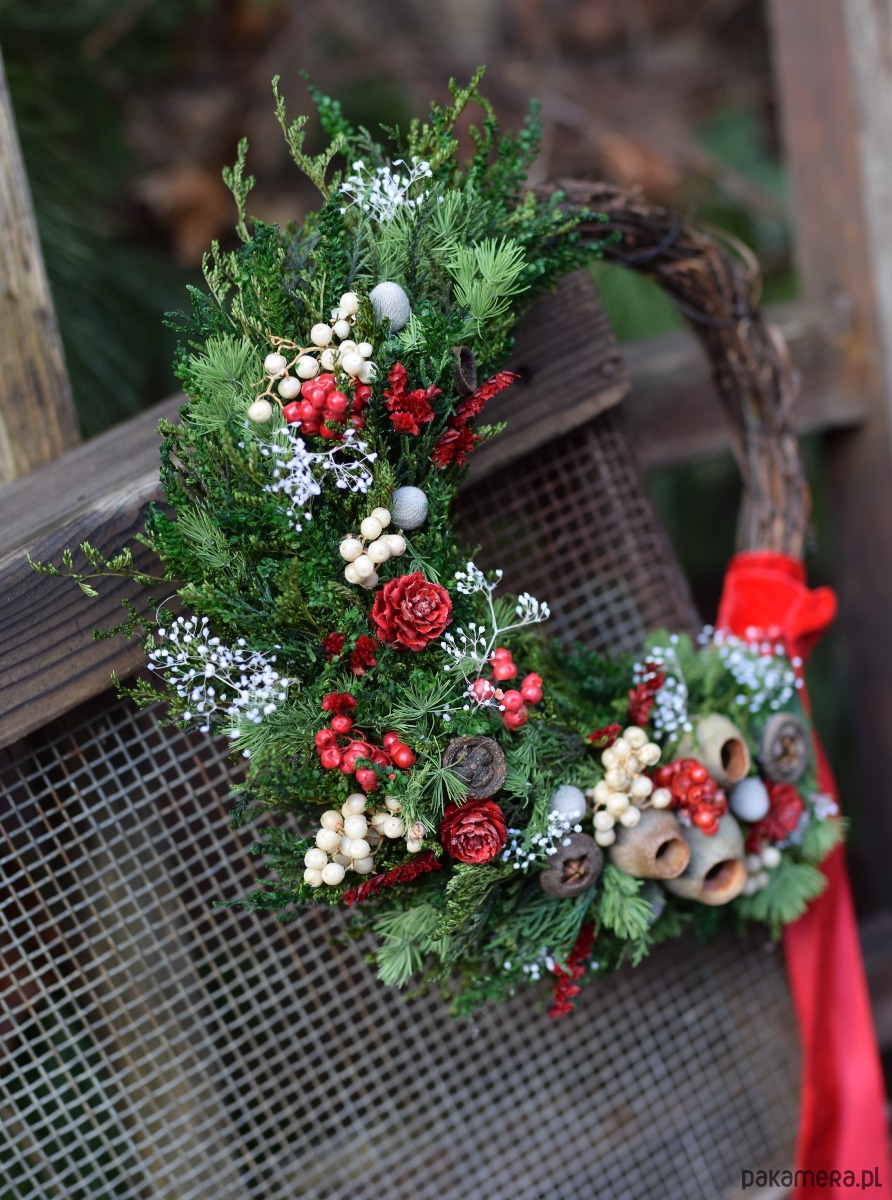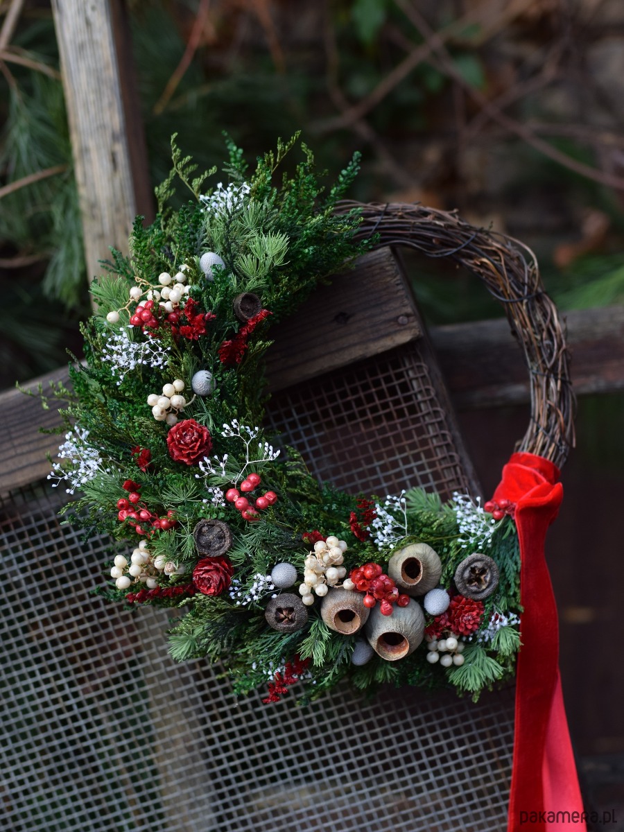 Ten unikatowy, świąteczny wieniec będzie idealną dekoracją do Twojego domu lub biura. Sprawdzi się również jako piękny prezent dla Twoich bliskich.