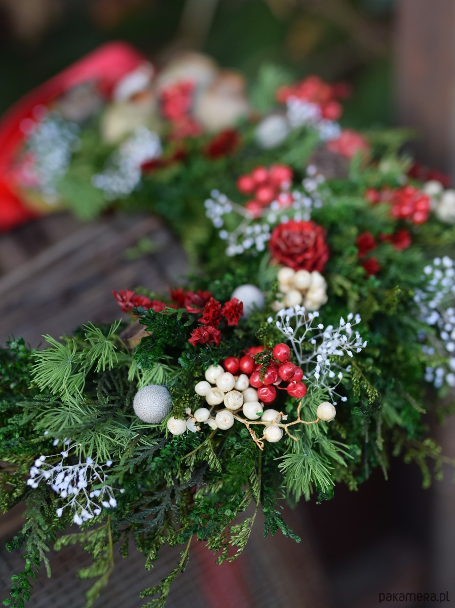 Wianek świąteczny z stabilizowanych i suszonych roślin