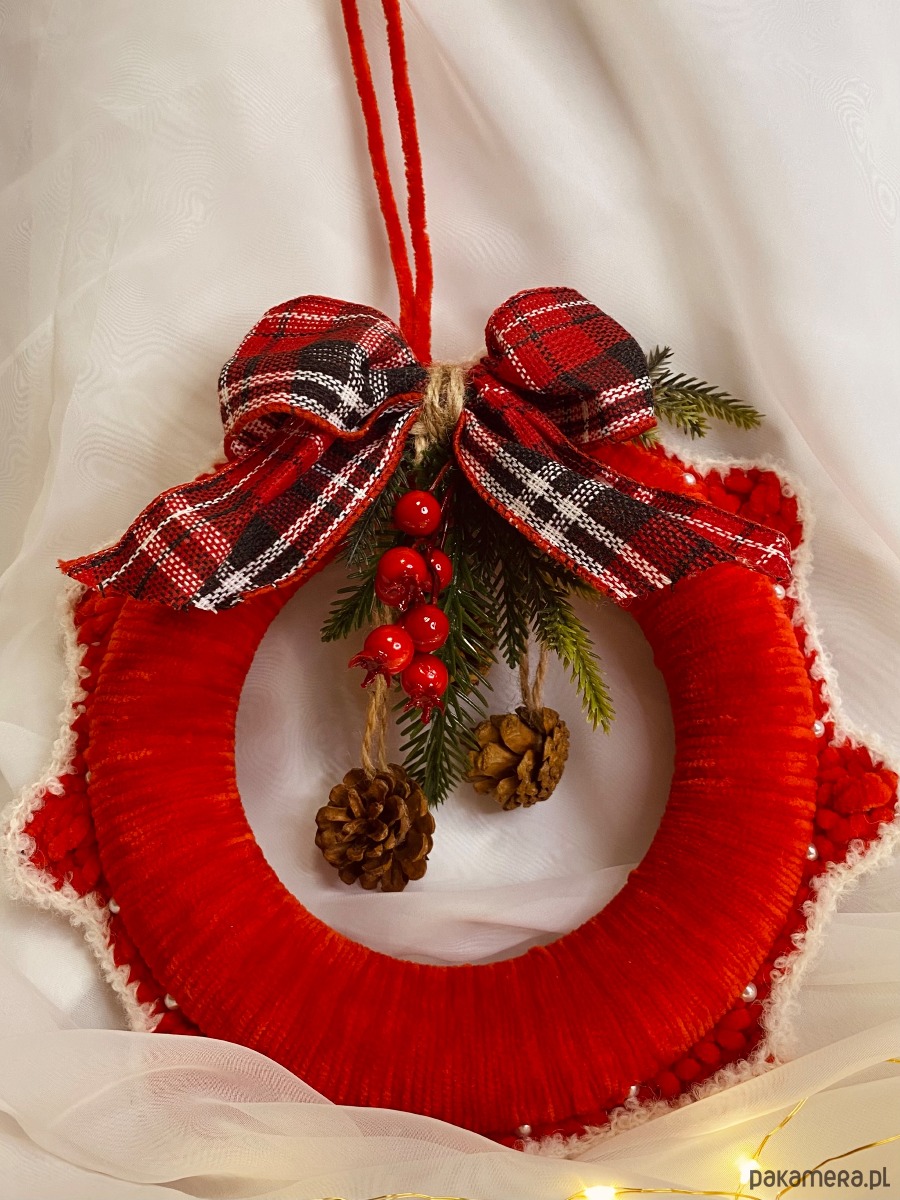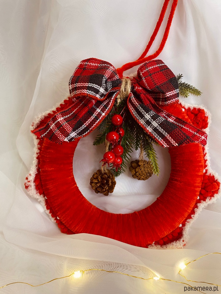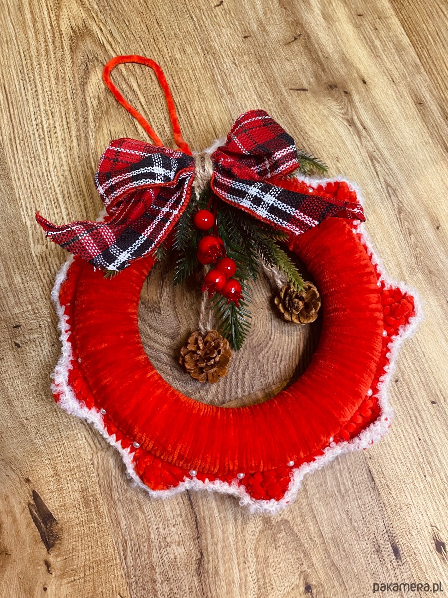 Wianek Świąteczny z włóczki