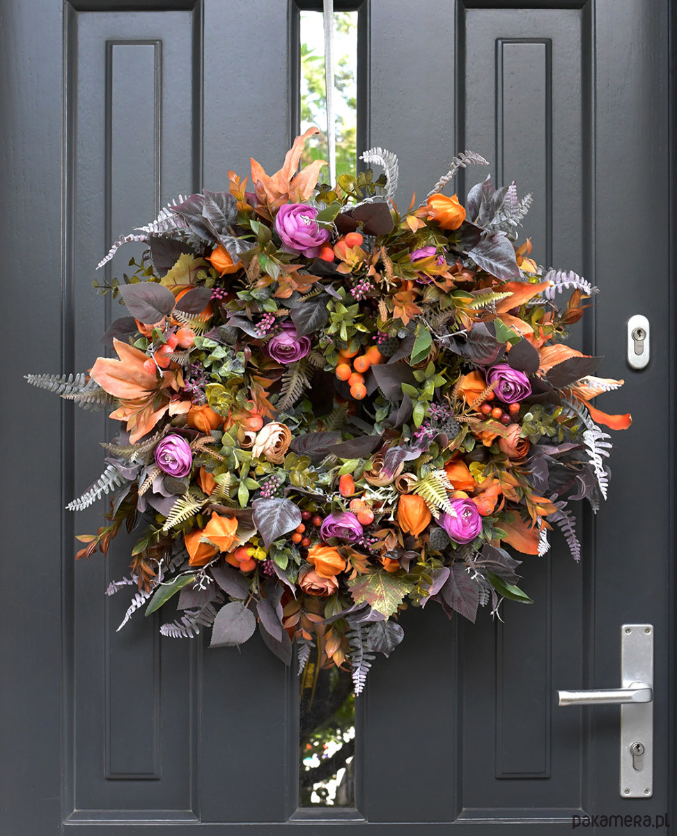 Wykonany ze sztucznych dodatków. Doskonale będzie się prezentował na drzwiach wejściowych.