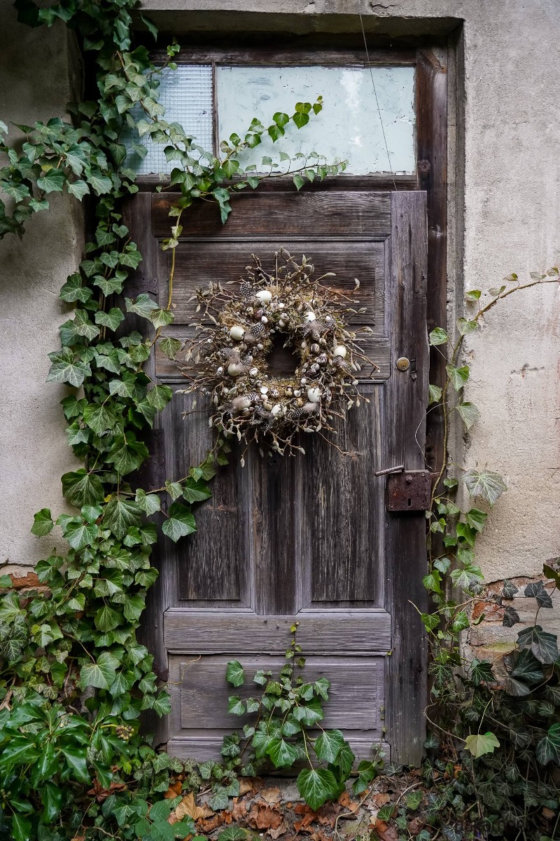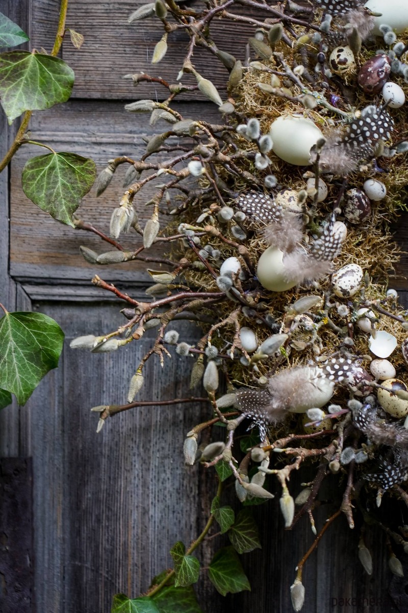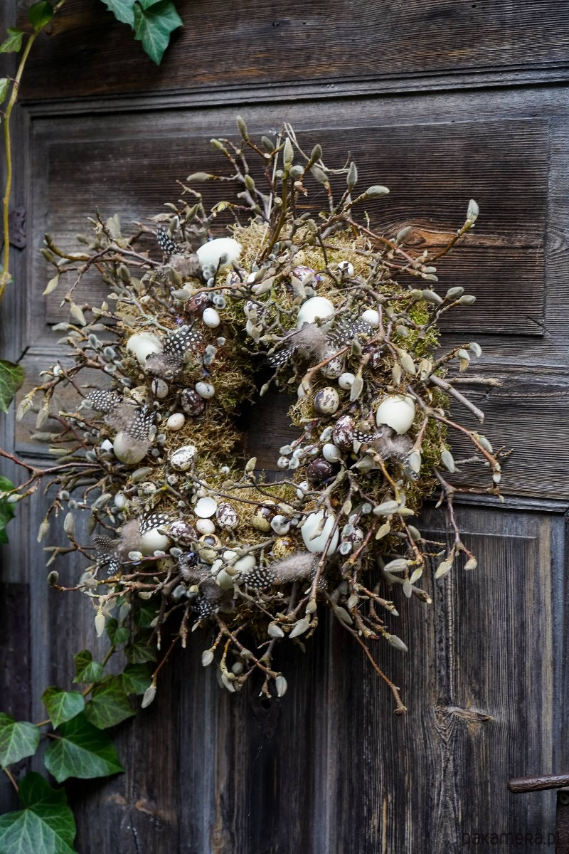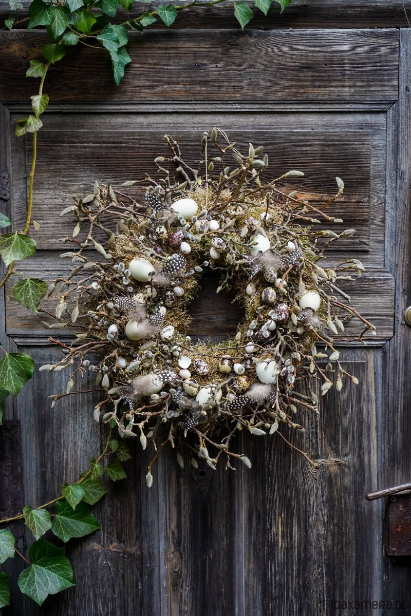 Wianek zrobiony z gałązek wierzby bazi ,magnolii , jajek , mchu