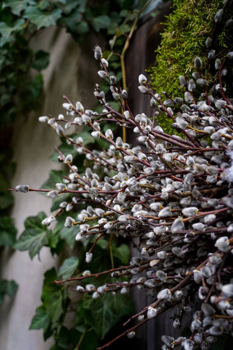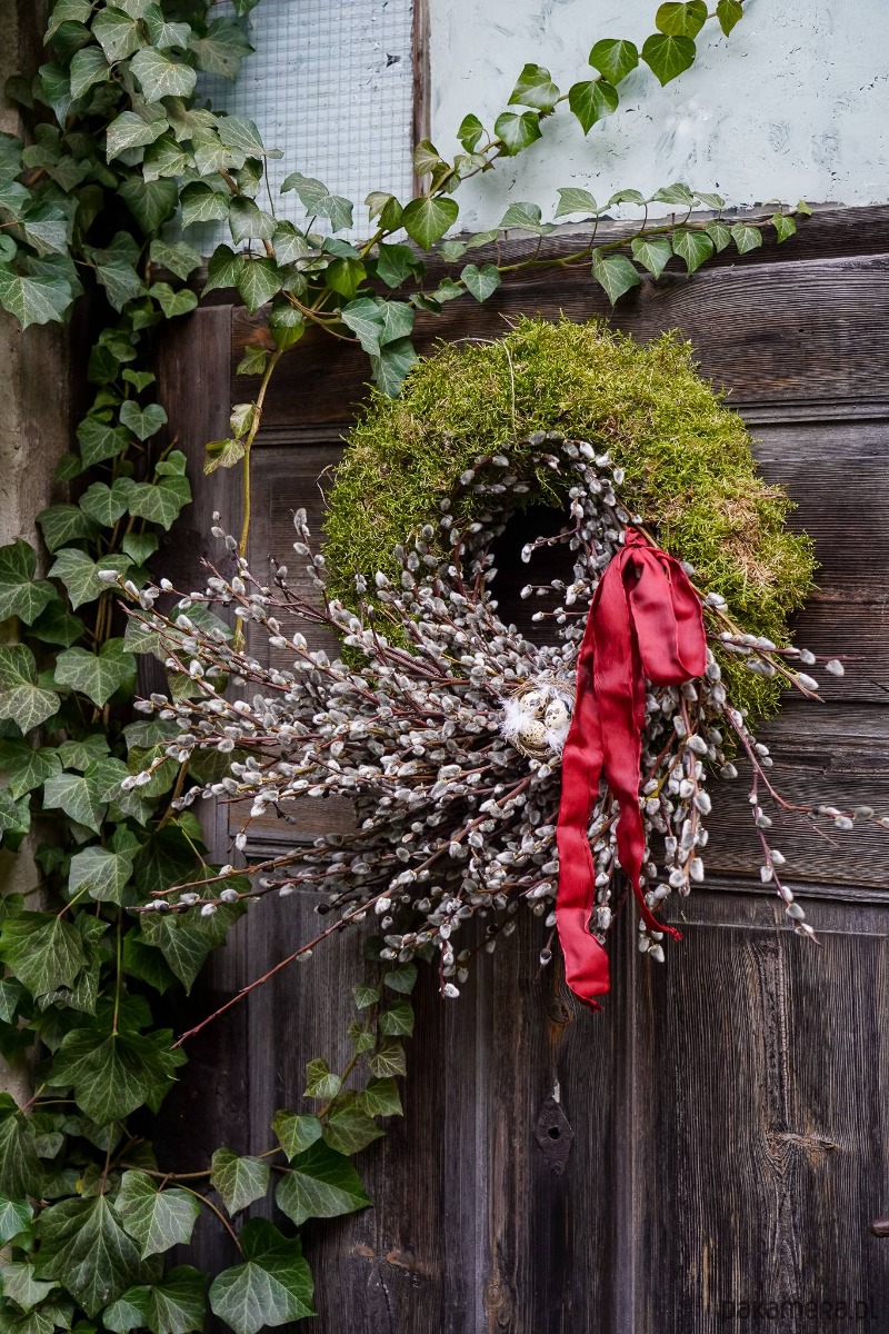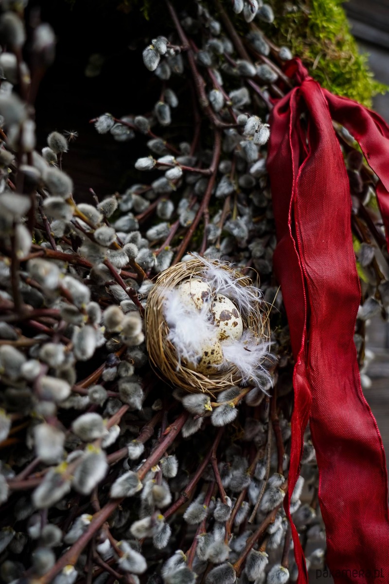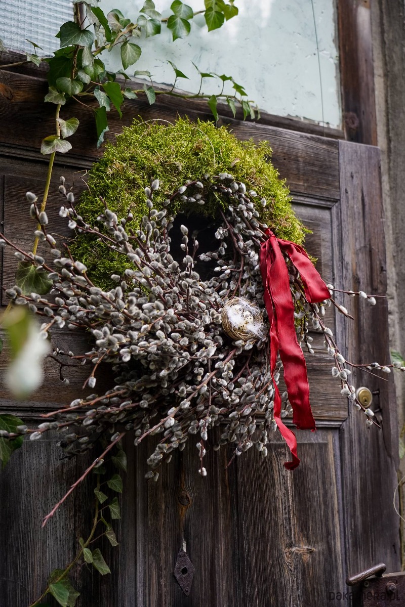 Wianek zrobiony z gałązek wierzby bazi ,magnolii , jajek , mchu