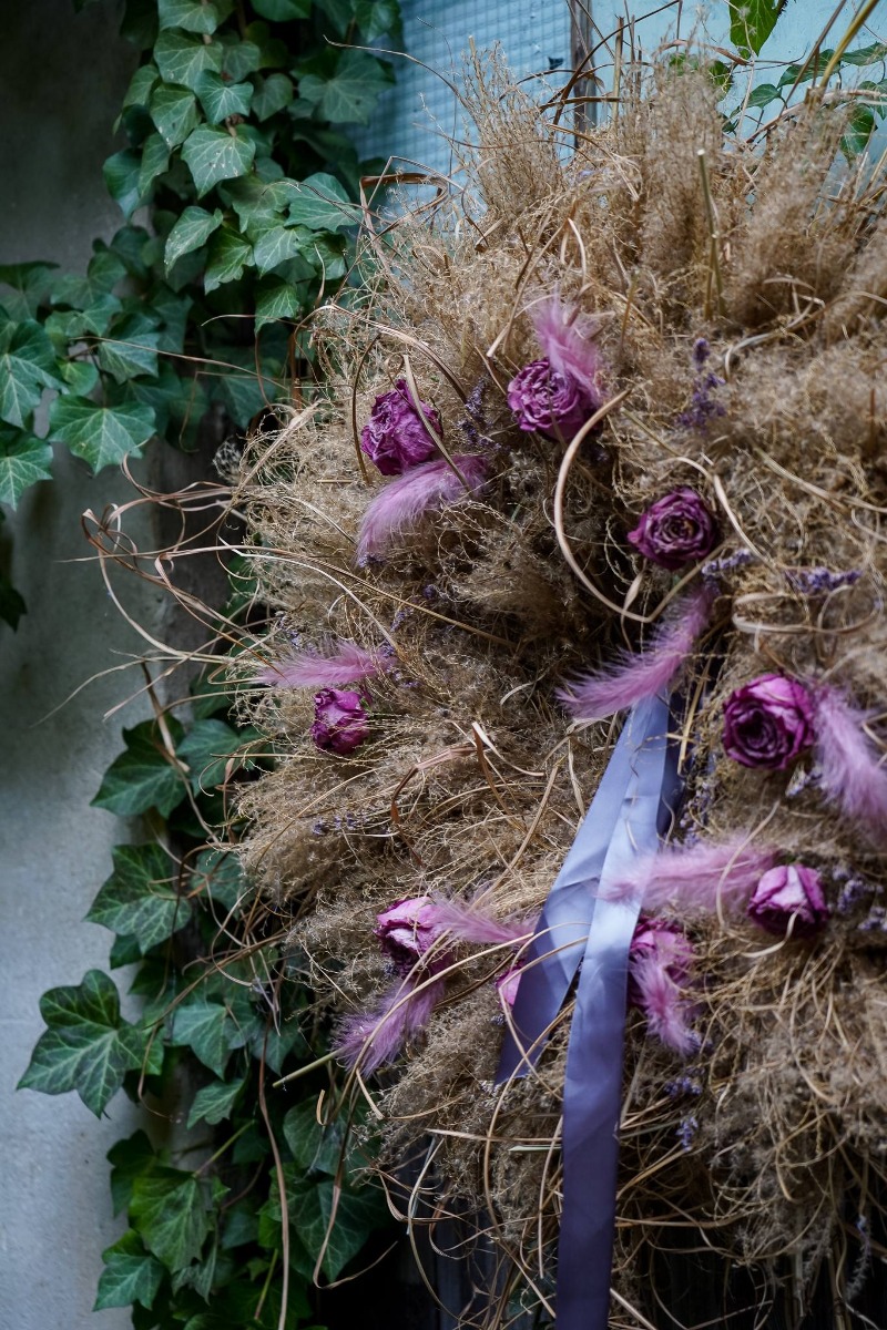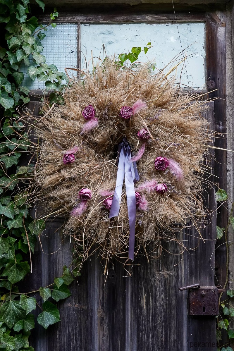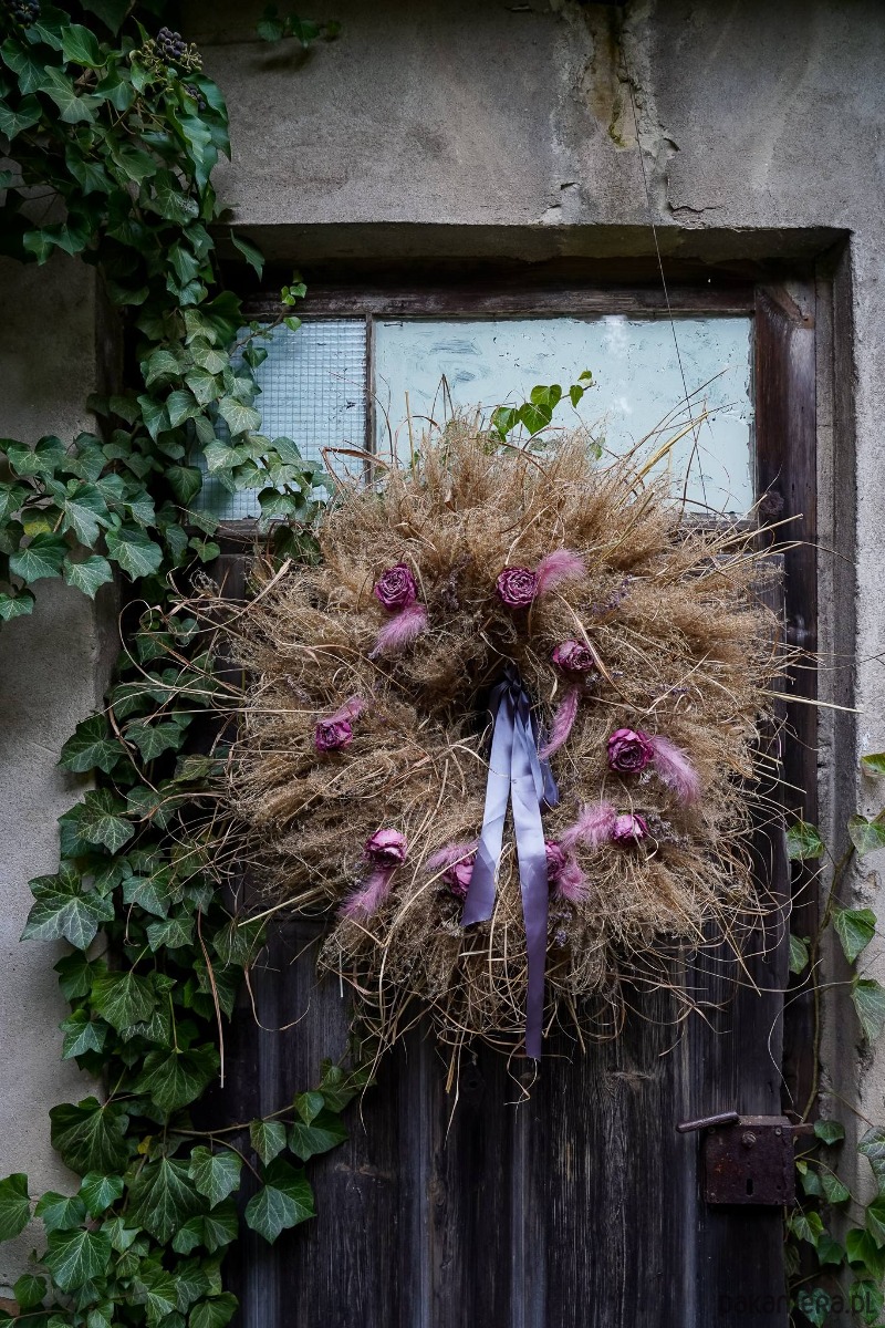 Wianek zrobiony z traw, suchych kwiatów