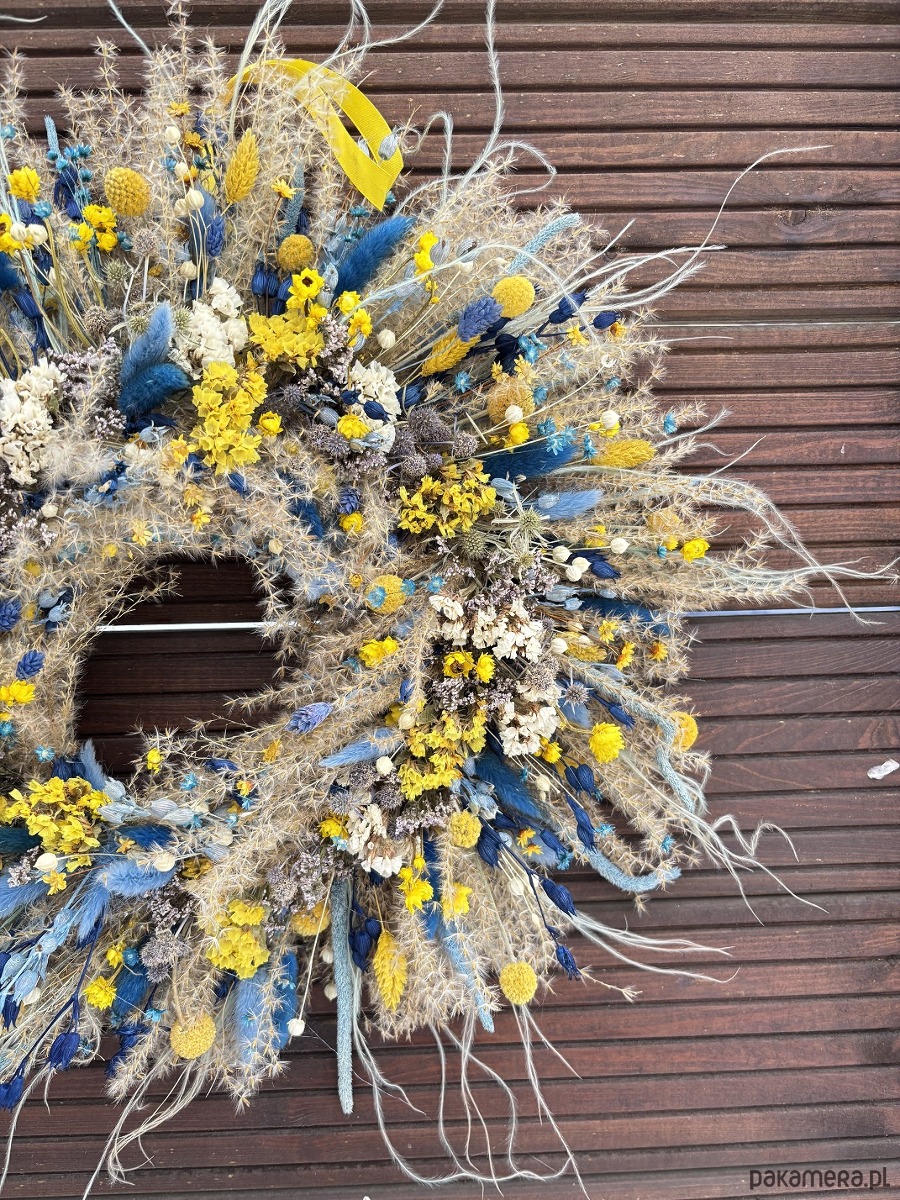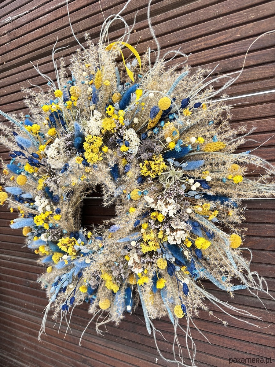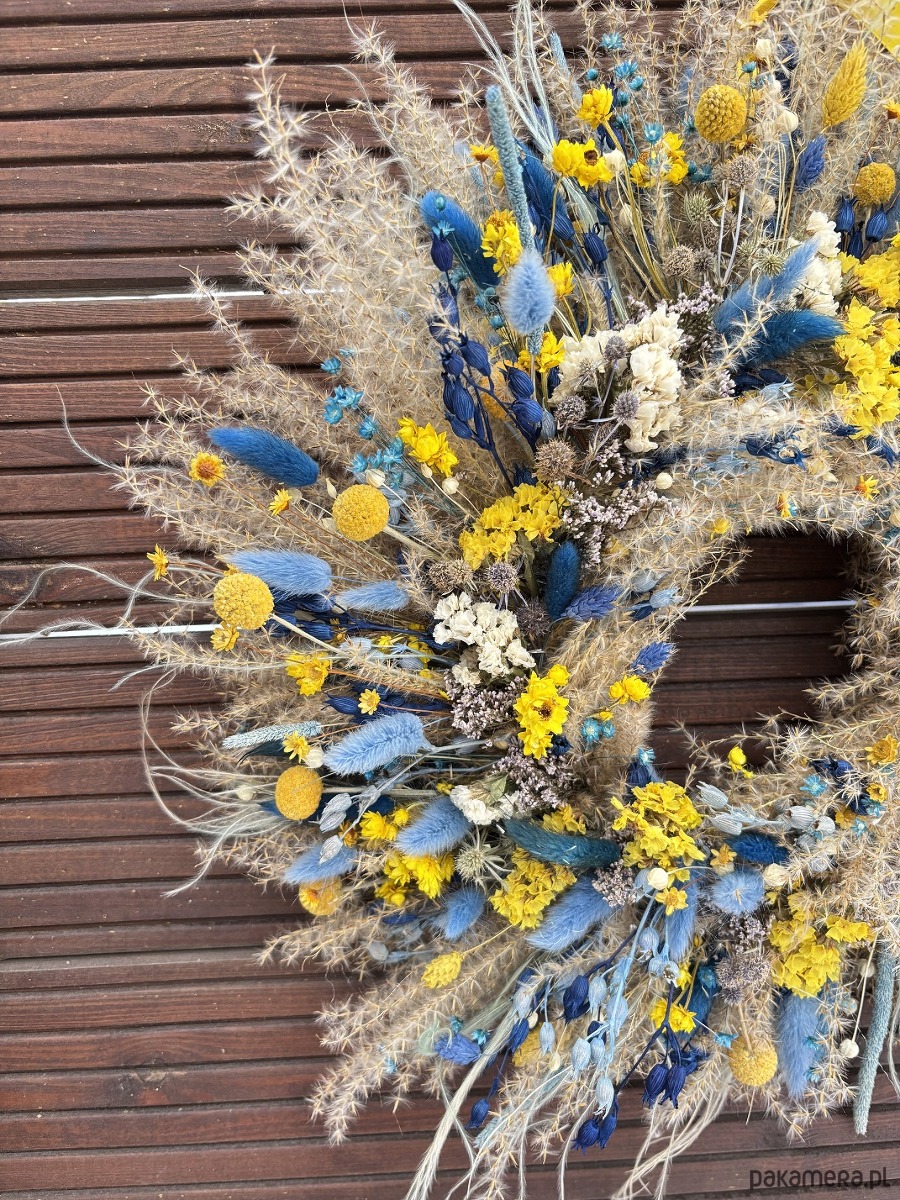 Wianek wiosenny naturalny żółto - błękitny