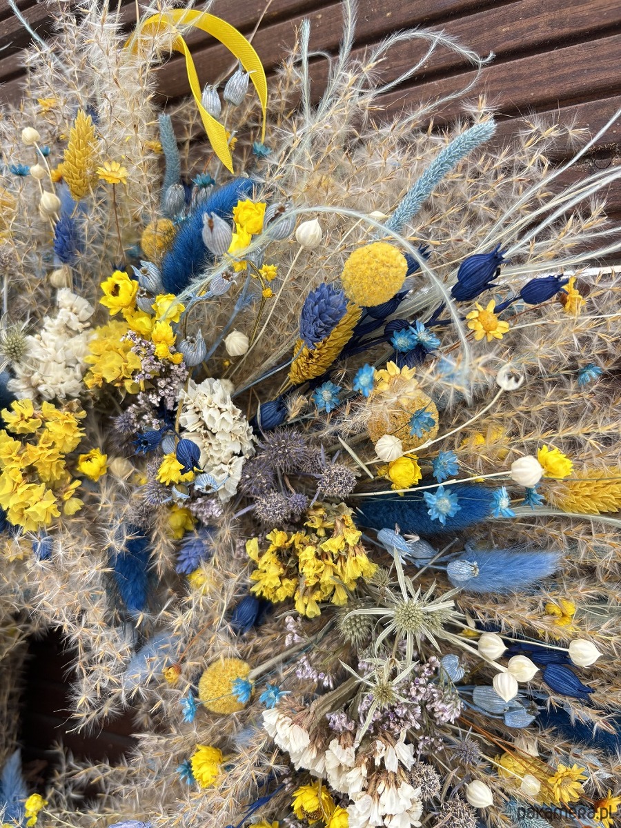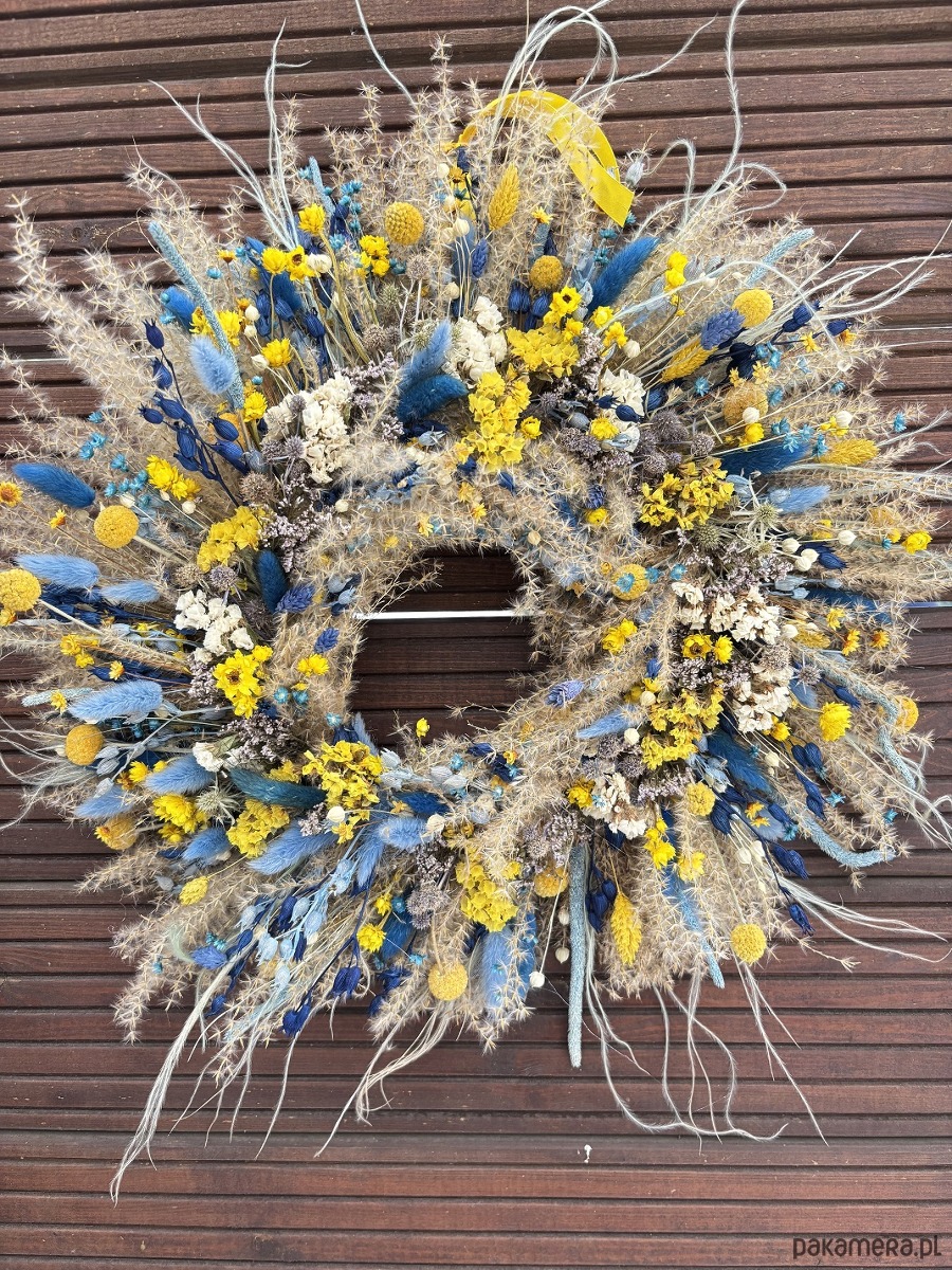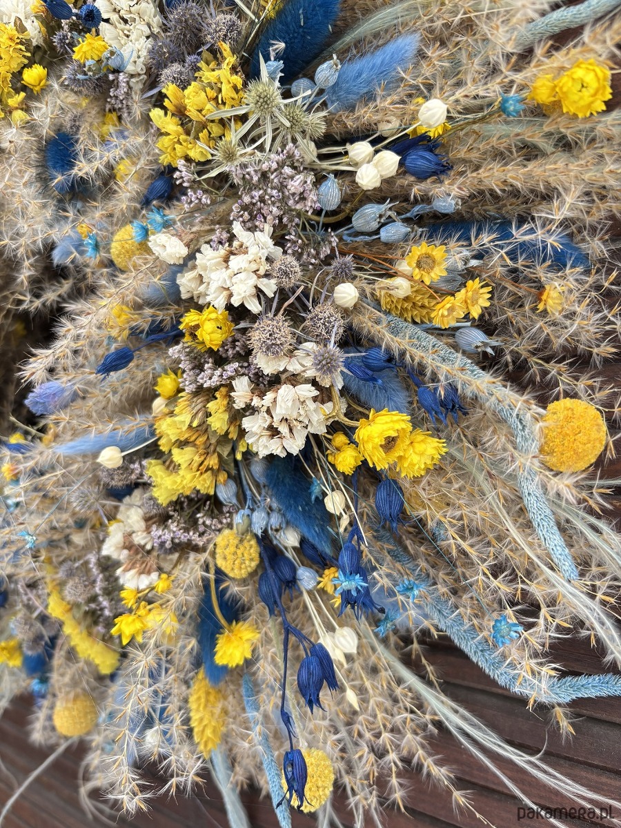 Wianek wiosenny naturalny żółto - błękitny