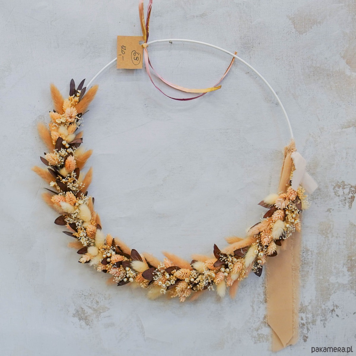 Piękny ręcznie wykonany wianek z suszonych kwiatów.