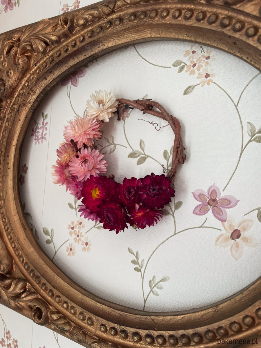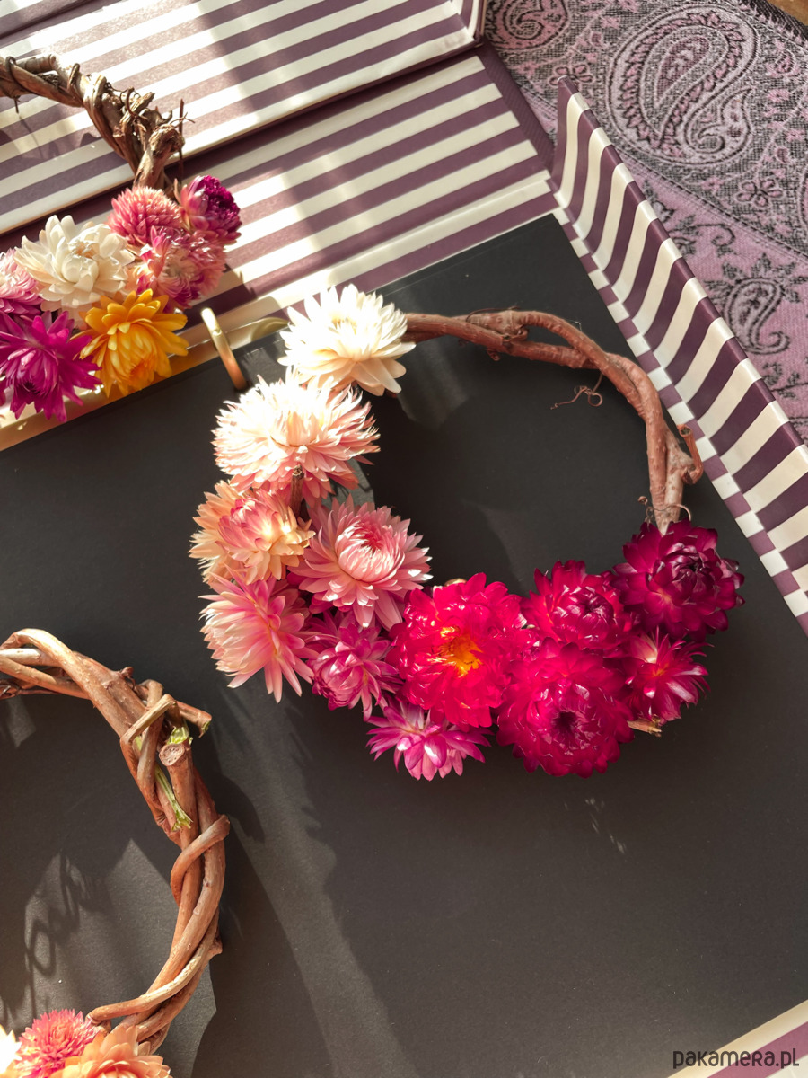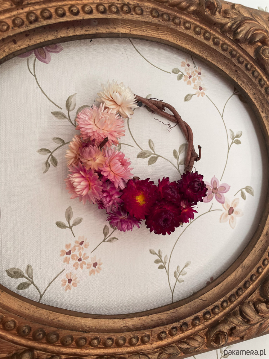 Wianuszek ręcznie wykonany z suszonymi kwiatami, idealny na prezent.