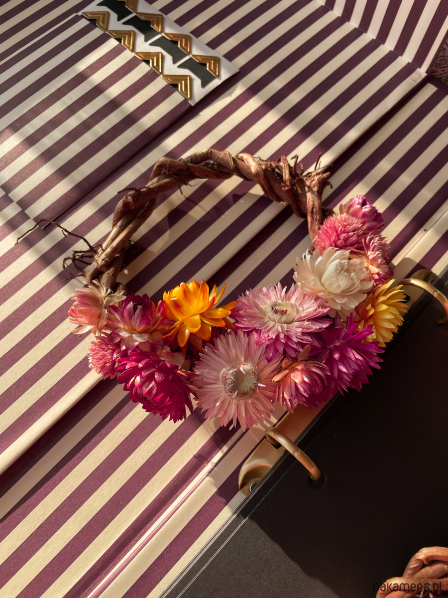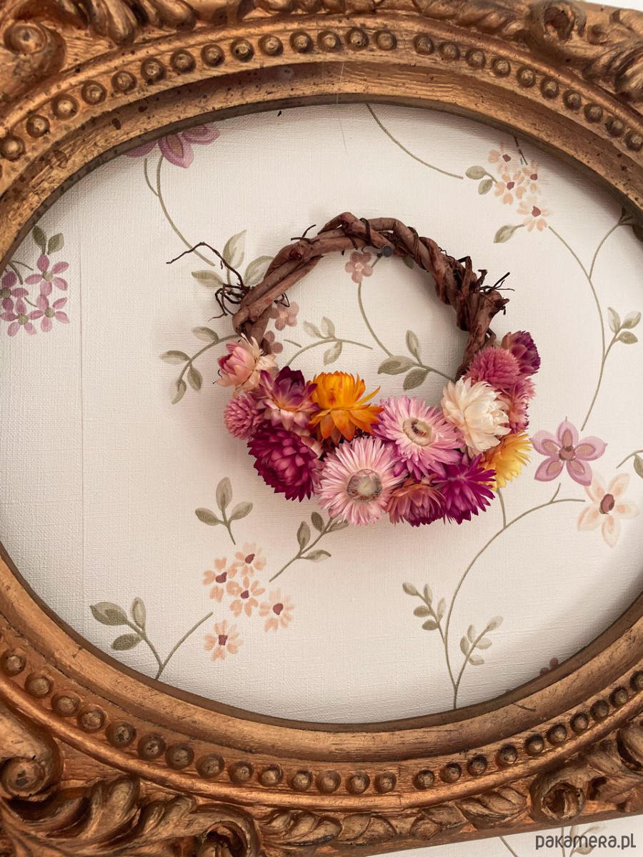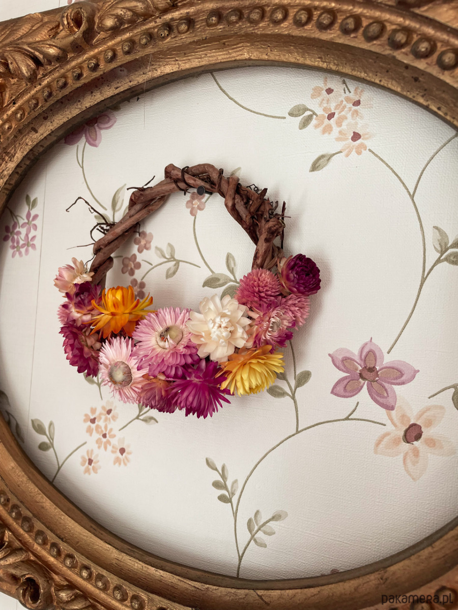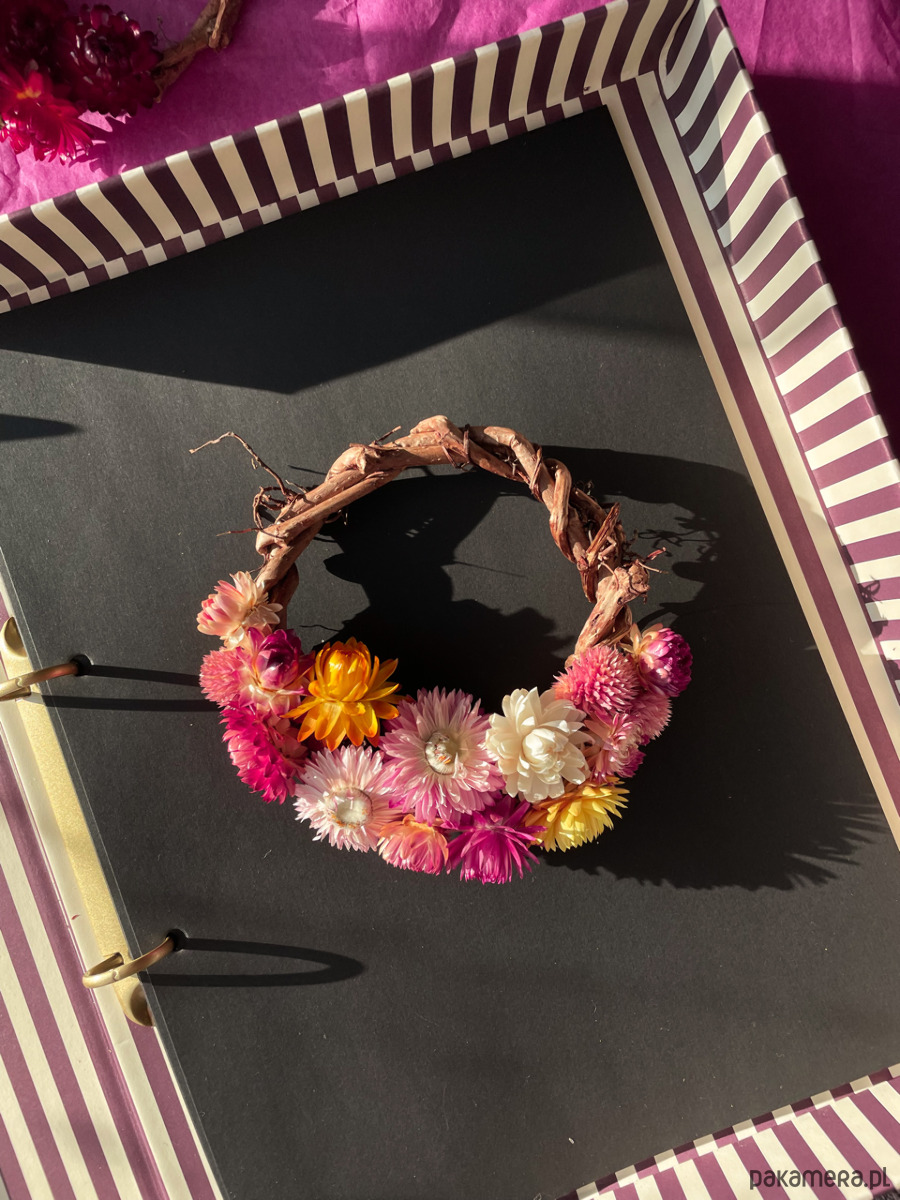Wianuszek ręcznie wykonany z suszonymi kwiatami, idealny na prezent.