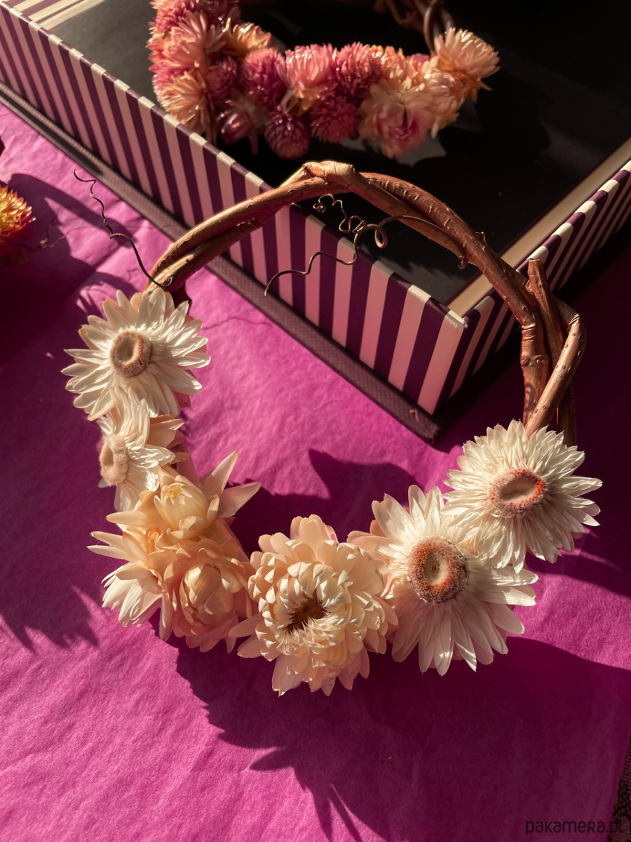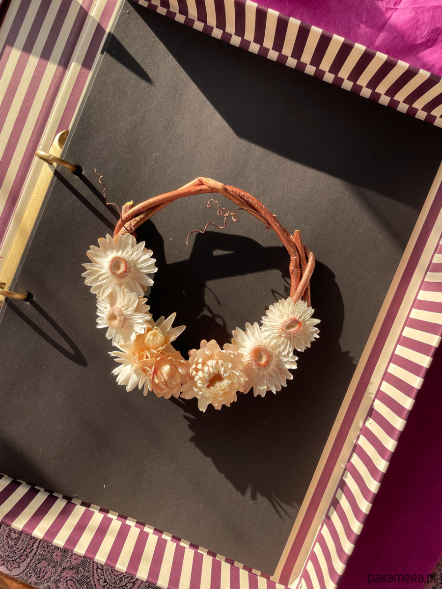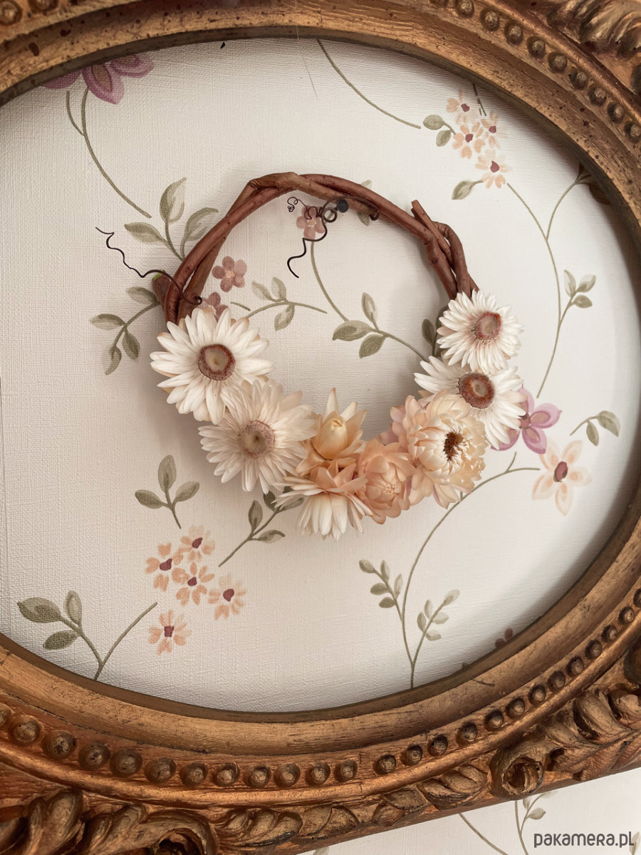 Wianuszek ręcznie wykonany z suszonymi kwiatami, idealny na prezent.