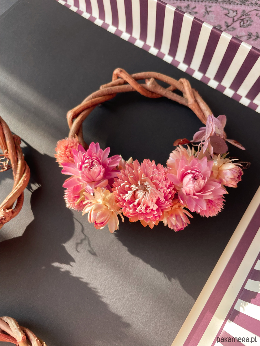 Wianuszek ręcznie wykonany z suszonymi kwiatami, idealny na prezent.
