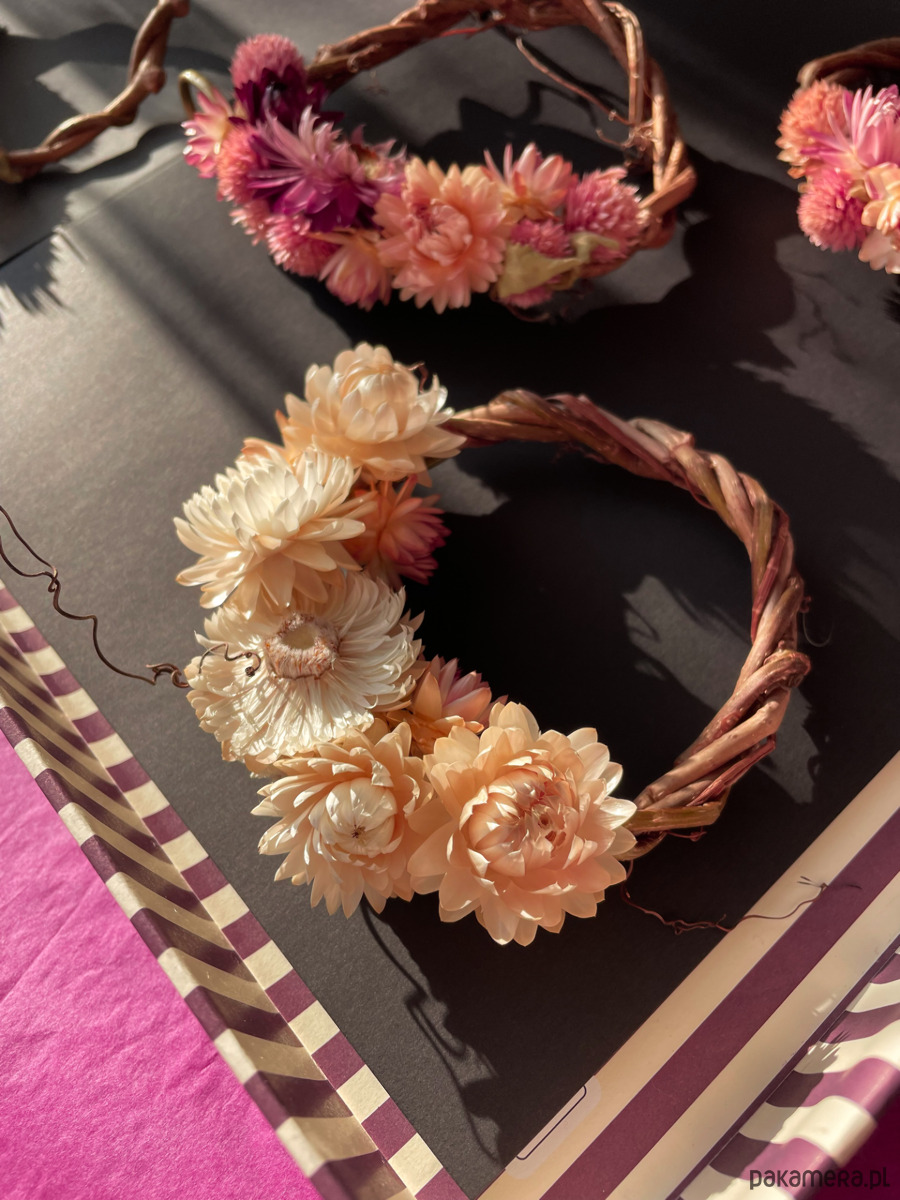 Wianuszek ręcznie wykonany z suszonymi kwiatami, idealny na prezent.