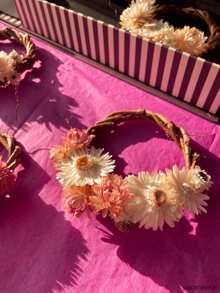 Wianuszek ręcznie wykonany z suszonymi kwiatami, idealny na prezent.