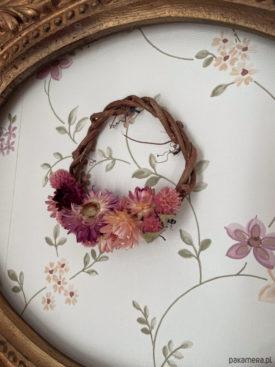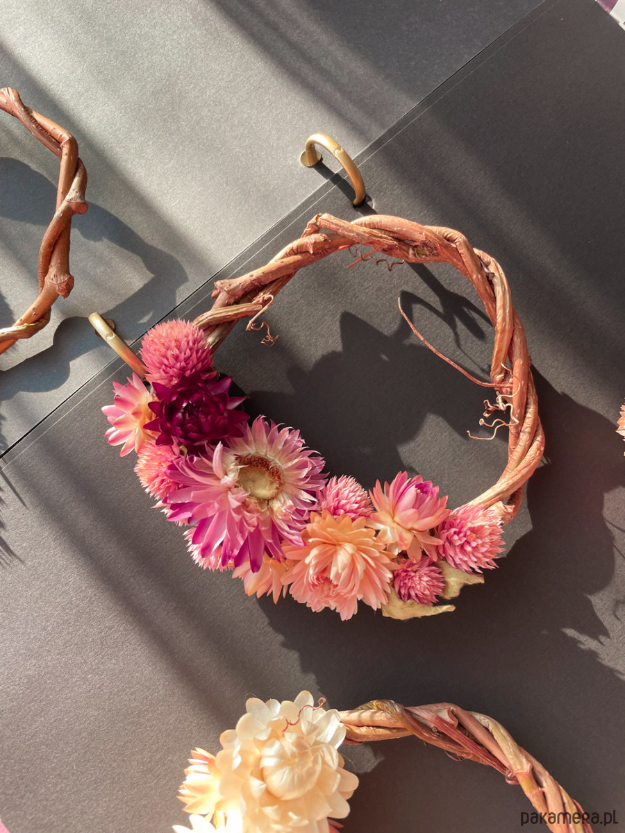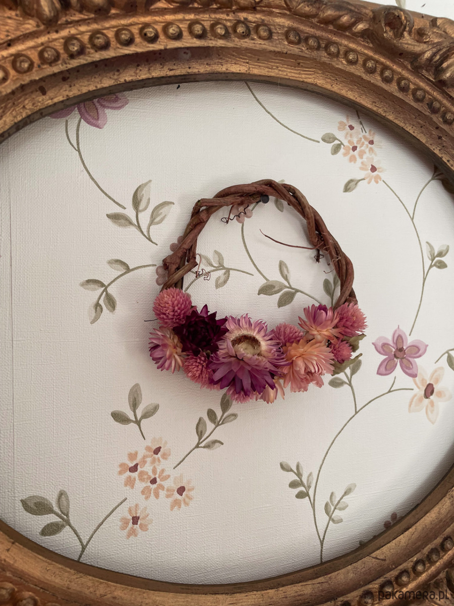 Wianuszek ręcznie wykonany z suszonymi kwiatami, idealny na prezent.