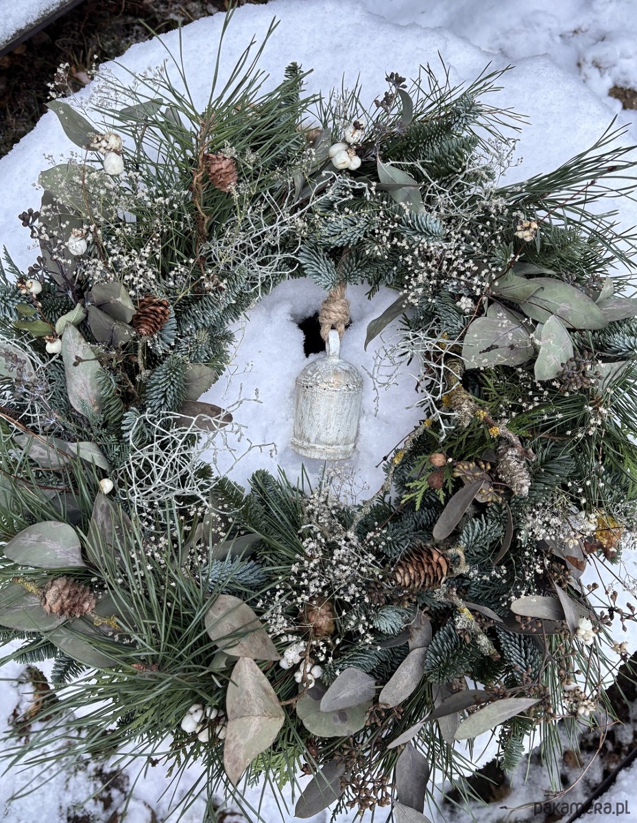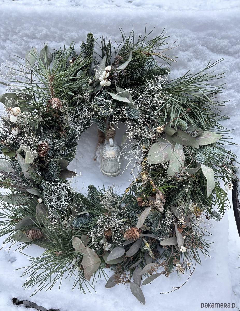 W wianku powieszonym na zewnątrz, zieleń pozostanie miękka i w żywych kolorach nawet do lutego.