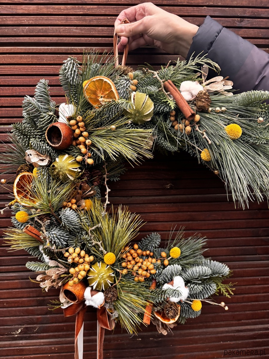 Cudownie pachnący zimowy wianek świąteczny, który nada Twojemu wnętrzu przytulnego klimatu.