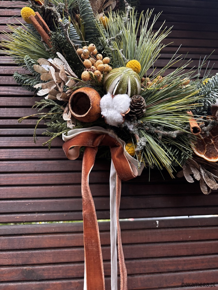 Nawet po roku przechowywania wianka w przewiewnych warunkach (np. kartonie) będzie się idealnie nadawał na kolejne święta.